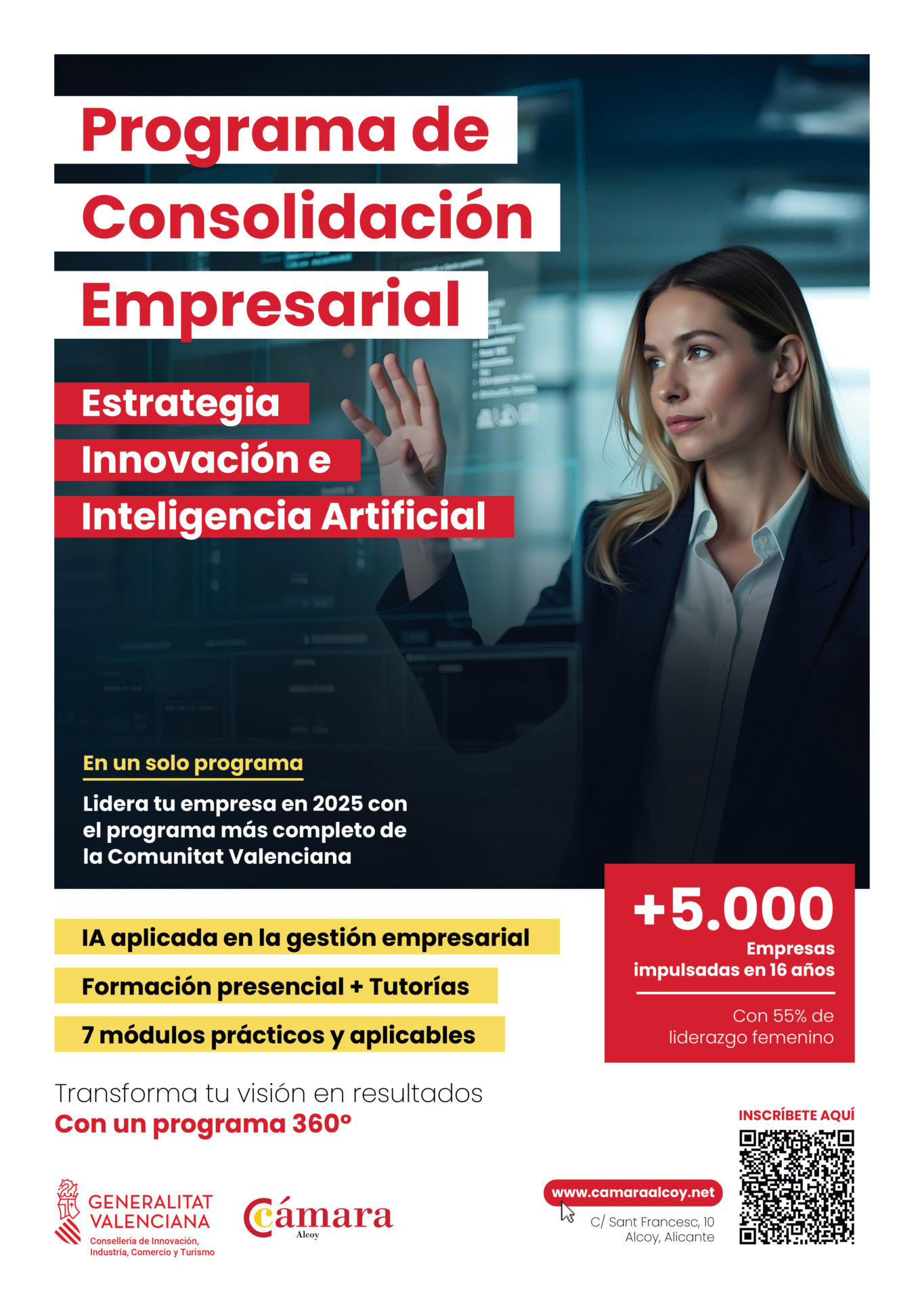 Les inscripcions ja estan obertes i es poden formalitzar a través de la web oficial de la Cambra: www.camaraalcoy.net/formacion-y-empleo/programa-de-consolidacion-empresarial