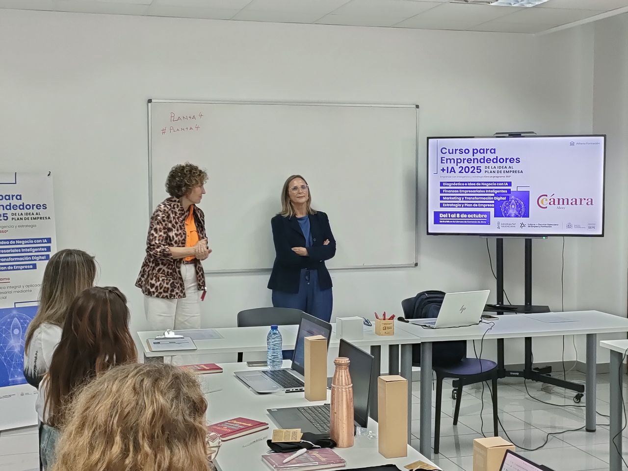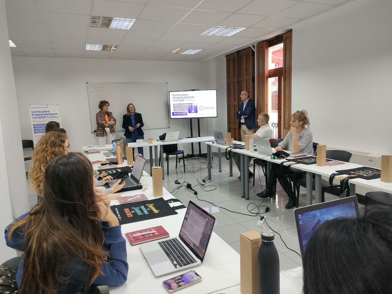 "El paper del LABORA és intentar que el talent arribe a bon port, que la gent que vol emprendre tinga totes les ferramentes necessàries i també les últimes tecnologies com la IA. I a través de la Cambra de Comerç i amb cursos com este donem suport a la gent que vol muntar un negoci", explica Carmen Reig, tècnica del LABORA.