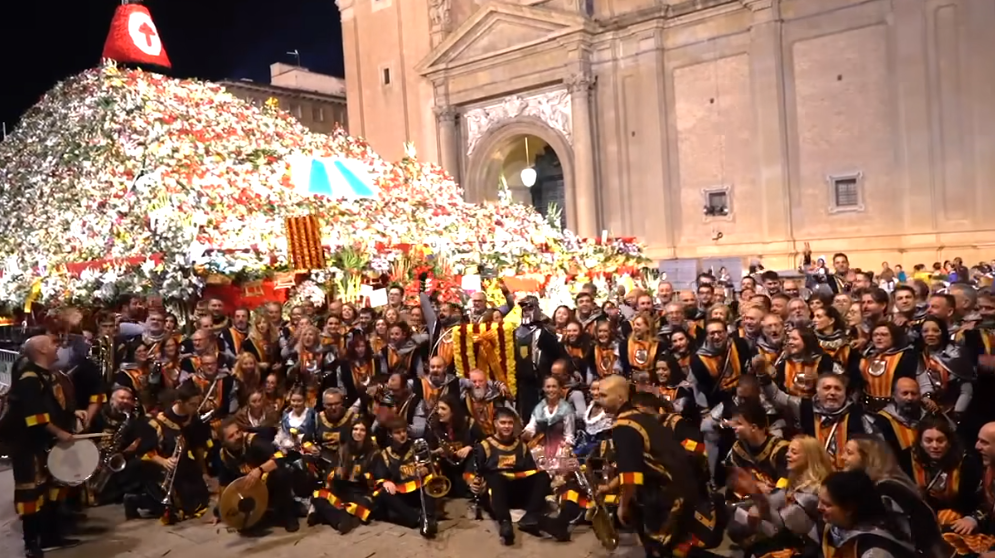 L’entrada a la Plaça del Pilar per participar en l’Ofrena de Flors de les Festes majors de Saragossa ha sigut espectacular gràcies a les gestions de Salvador Albero, capità dels Aragonesos en 2025.