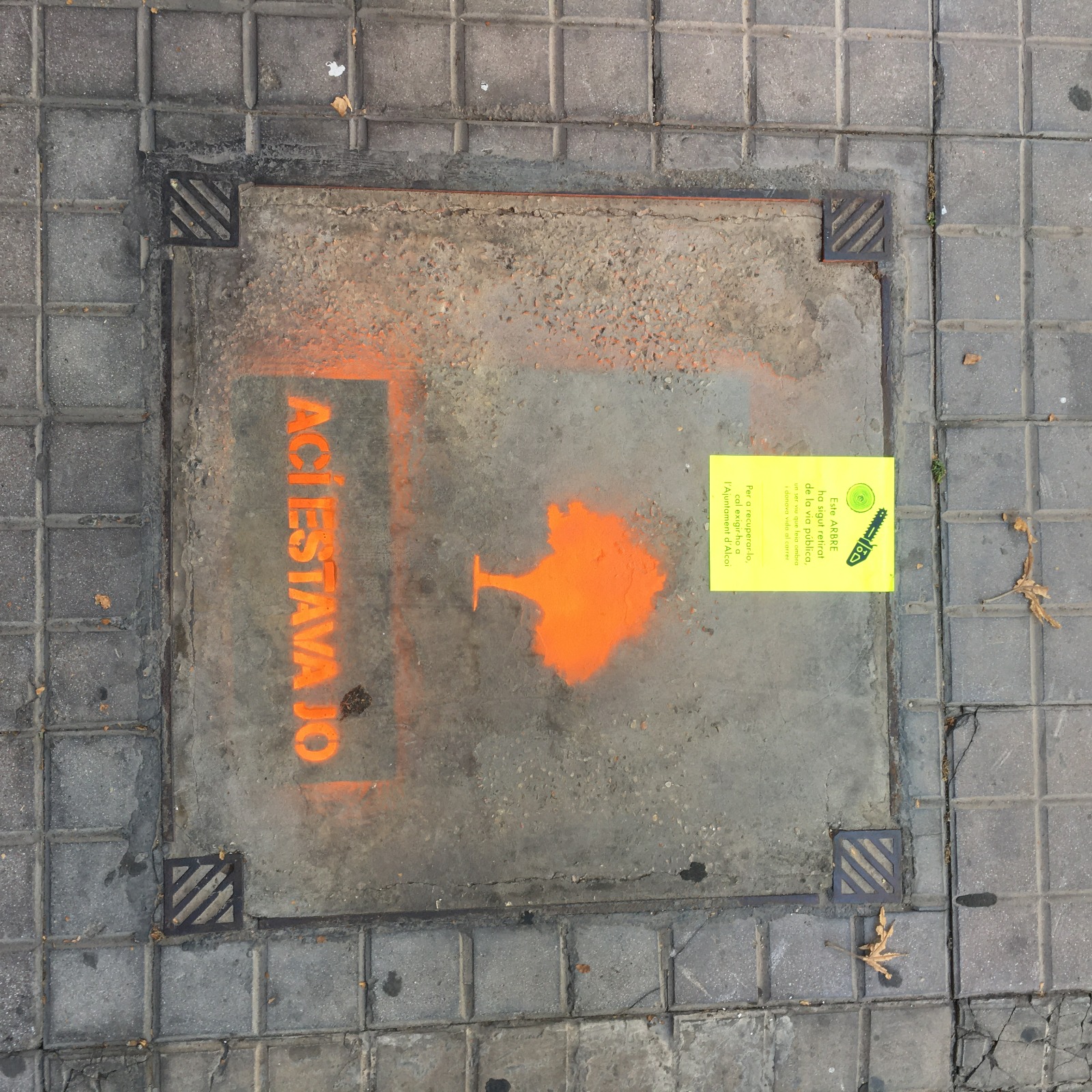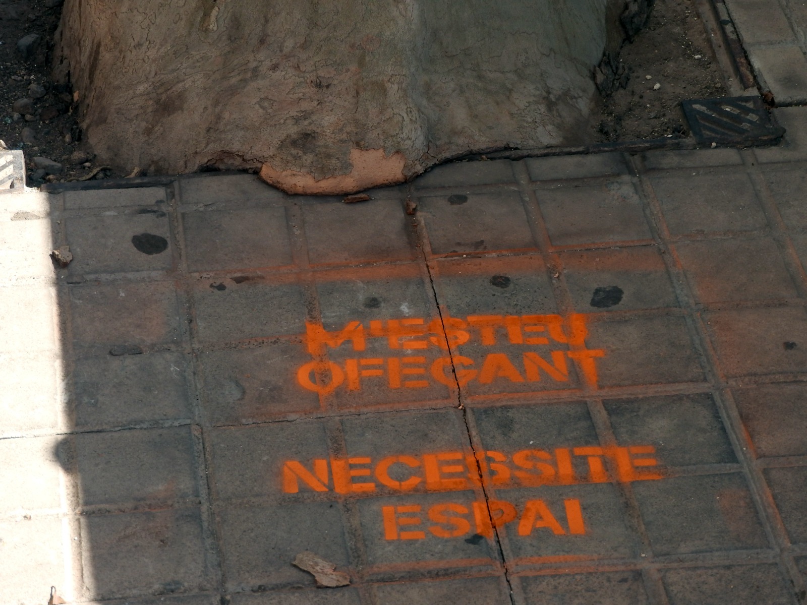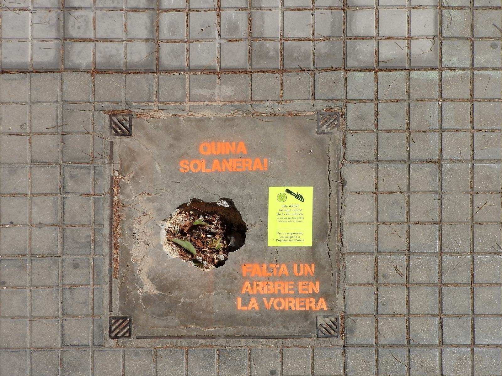 “Quina solanera, falta un arbre en la vorera”, Ací estava jo” (amb el dibuix d’un arbre), “Arbre mal podat, arbre mutilat”, “Arbre mal podat, ni ombra ni trellat”, son algunes de les pintades efímeres (s'esborren en poc temps o fàcilment amb aigua) que la Colla Ecologista La Carrasca va fer el passat dissabte pels carrers del barri de Santa Rosa i Eixample.