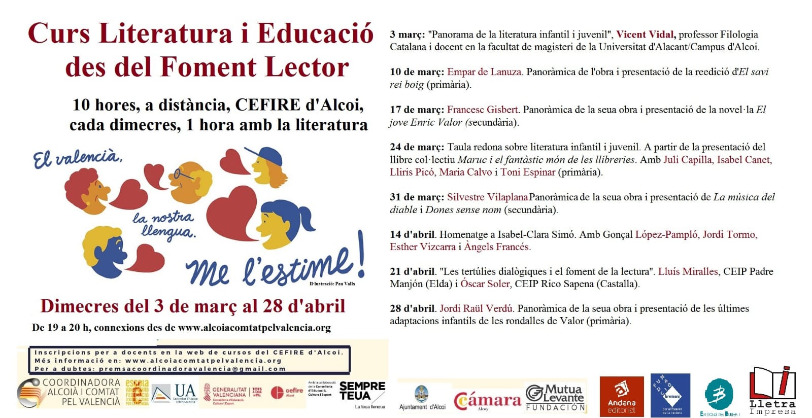 A partir del 3 de març i fins al 28 d'abril, la Coordinadora pel Valencià ha organitzat 10 hores de curs de Literatura i Educació des del Foment Lector.