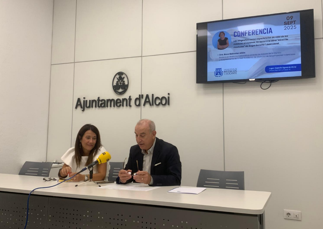 El president del Col·legi Oficial de Metges d’Alacant, Hermann Schwarz, ha agraït a l’Ajuntament d’Alcoi la col·laboració i el suport, recordant també l’homenatge que es va fer en 2023 a la primera col·legiada alacantina, Virgínia Soler. Schwarz ha destacat la importància de posar en valor com era la medicina en els segles XVIII i XX i les transformacions que va experimentar. “Les biografies com a experiències de vida dels metges alcoians", en torn a l’obra "Alcoi i la medicina" d’Ángel Beneito i Joan Lloret, permeten entendre com era exercir la professió, les millores de la salut pública i el component social que va marcar l’evolució de la societat.