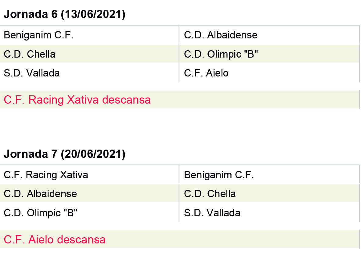 El sorteig ha estat capritxós i ha deixat la confrontació entre el Racing de Xàtiva i el Benigànim CF, els dos primers en la fase regular, per a la darrera jornada i en territori xativí. Si esta nova competició manté el mateix guió que en la primera fase, l'ascens se'l podrien jugar tots dos equips el 20 de juny en el camp de la Murta.