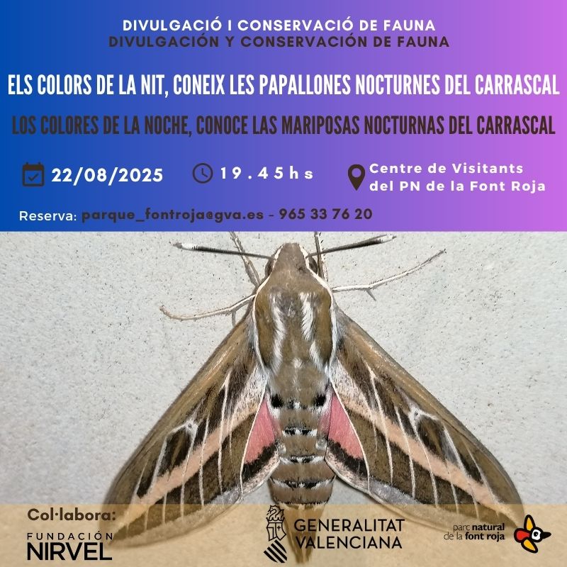El Carrascal de la Font Roja és casa de nombroses papallones nocturnes. Per aquest motiu des del Parc Natural, s’ha organitzat una activitat que consisteix en una xerrada i un recorregut per conèixer-les de prop.