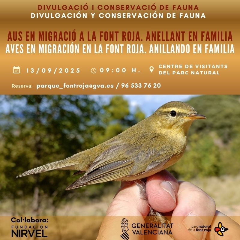 Les aus es troben en ple pas migratori cap a Àfrica. Algunes nidifiquen al Parc Natural de la Font Roja, mentre que altres fan una parada dins del seu espai migratori. Aquesta és una magnífica oportunitat per conèixer de prop les diferents espècies forestals que aquest dies volen entre els arbres del Carrascar. Per aquest motiu, des del Parc han organitzat una jornada d’anellament d’aus en família.