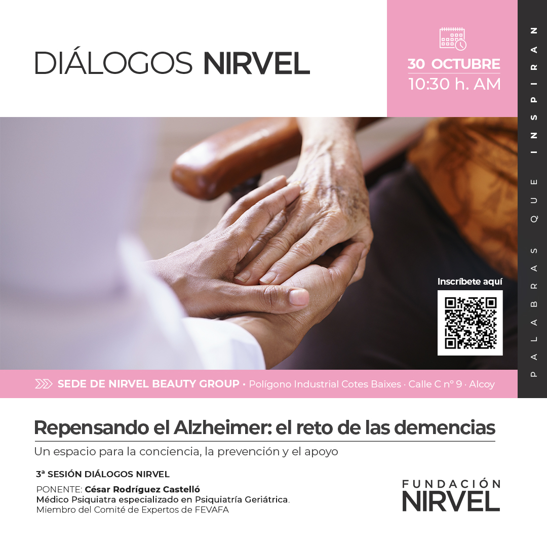 La Fundació Nirvel, celebra aquest 30 d’octubre a les 10:30h (una nova edició de ‘Diàlegs Nirvel’, un cicle de trobades i xarrades que serveixen per coma la seu de l’empresa al Polígon Cotes Baixes) partir coneixements i experiències de talent ubicades a Alcoi i el seu entorn. Aquesta tercera edició posa el focus en l’Alzheimer i altres demències. Per poder participar, cal inscriure’s a aquest formulari.