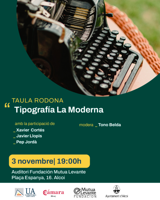 Començaran el dilluns 3 de novembre a les 19:00 hores amb una taula redona sobre Tipografia La Moderna, que comptarà amb la participació de Pep Jordà, Xavier Cortés i Javier Llopis.