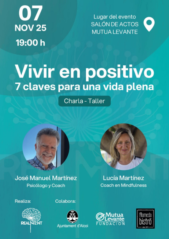 Finalment, el divendres 7, la programació es completarà amb la conferència “Vivir en positivo: 7 claves para una vida plena”, a càrrec de José Manuel Martínez (psicòleg i coach) i Lucía Martínez (coach de mindfulness).