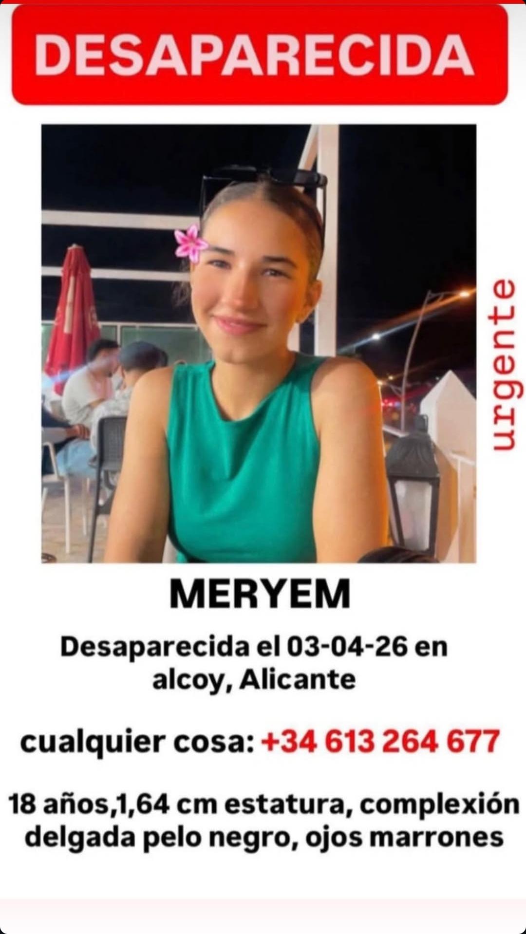 Meryem, de 18 anys va desaparèixer el passat divendres 3 d'abril. La jove va dir a sa mare, ja de nit, que baixava a tirar el fem i comprar alguna cosa. Viuen per la zona d'Oliver. Tot havia sigut aparentment normal, ella havia cuinat macarrons per a la seua neboda. Sa mare, que està en diàlisis i prenent molta medicació, es va adormir i no es va adonar que no estava fins que la seva filla major, germana de la desapareguda, va tornar de treballar del seu torn de nit.