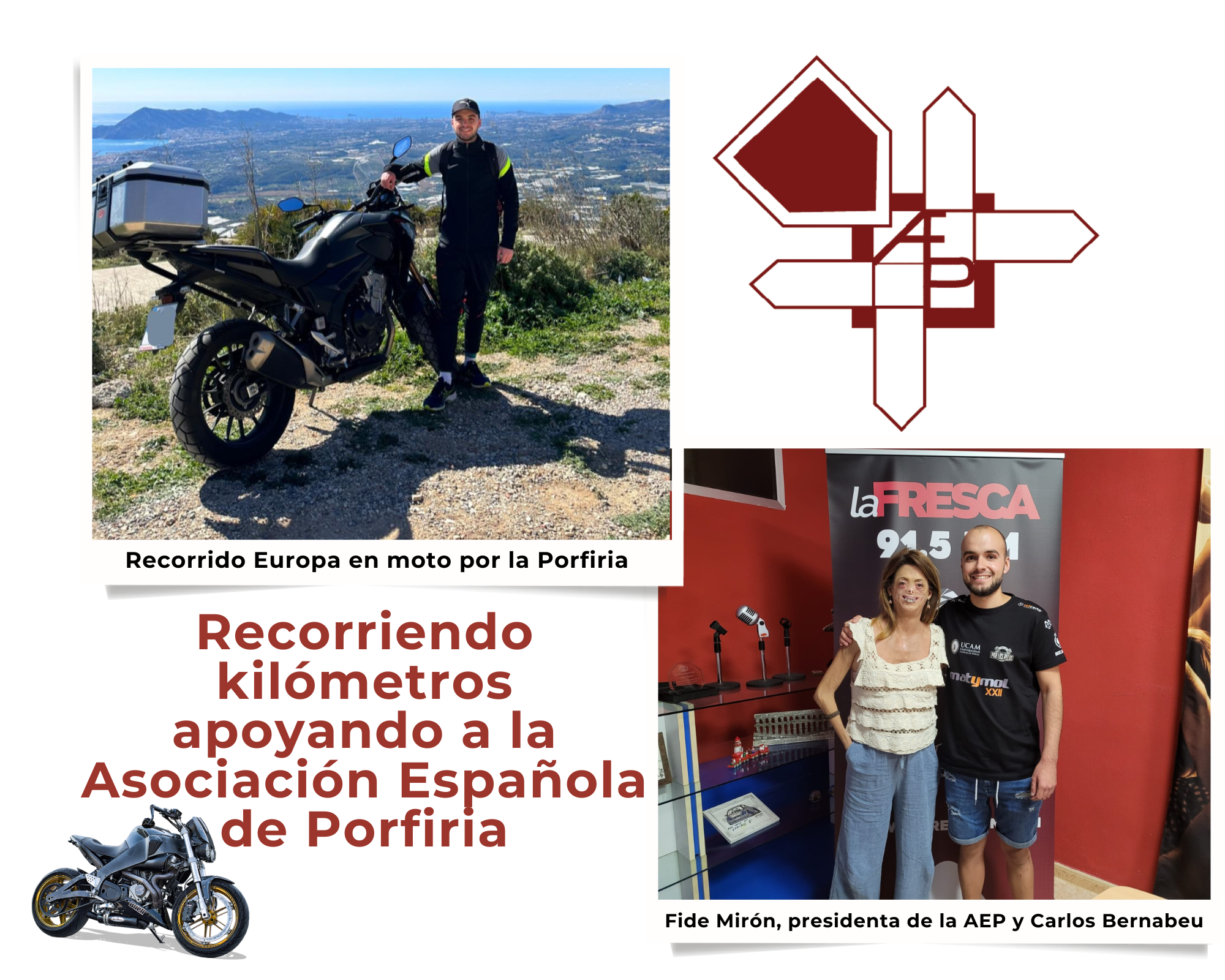 Res feia preveure que els camins de Carlos Bernabeu i la iberuda Fide Mirón, presidenta de l’Associació Espanyola de la Porfíria, es creuaren, però així ha sigut. I és que Bernabeu ha decidit iniciar un viatge amb moto arreu de tota Europa, però acompanyat per una bona causa.