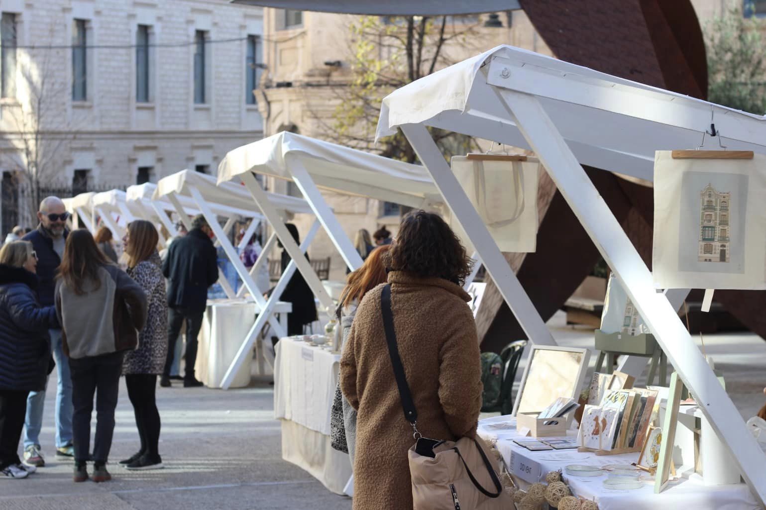 Una desena d’artistes locals exposen el dissabte 6 de desembre a la plaça Ramón y Cajal en una jornada que coincideix amb el Mercat de Nadal.