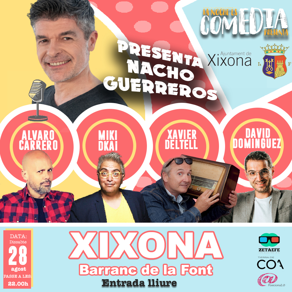 El primer espectacle, “La nit és comèdia”, serà el 28 d’agost a les 22.30h en la Font del Barranc. L’actuació es tracta d’un monòleg presentat per Nacho Guerreros, que compta amb l’actuació dels monologuistes Álvaro Carrero, Miki Dkai, David Domínguez i Xavier Deltell.