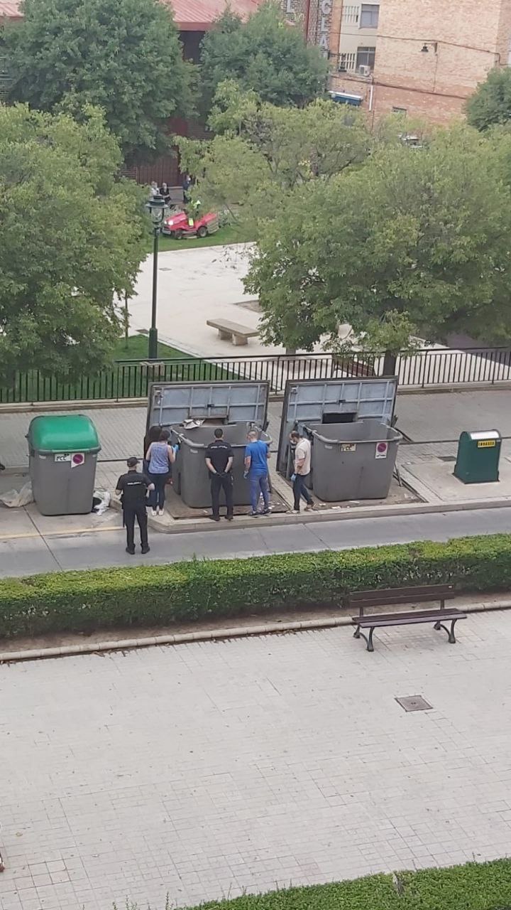 Poc després del migdia d'aquest 26 de juliol la Policia Nacional ha acudit a la Zona Nord, al final de l'avinguda de la Hispanitat, per a inspeccionar un contenidor que desprenia una forta olor. Dins han trobat bosses amb vísceres i teixits que estaven en un avançat estat de putrefacció.