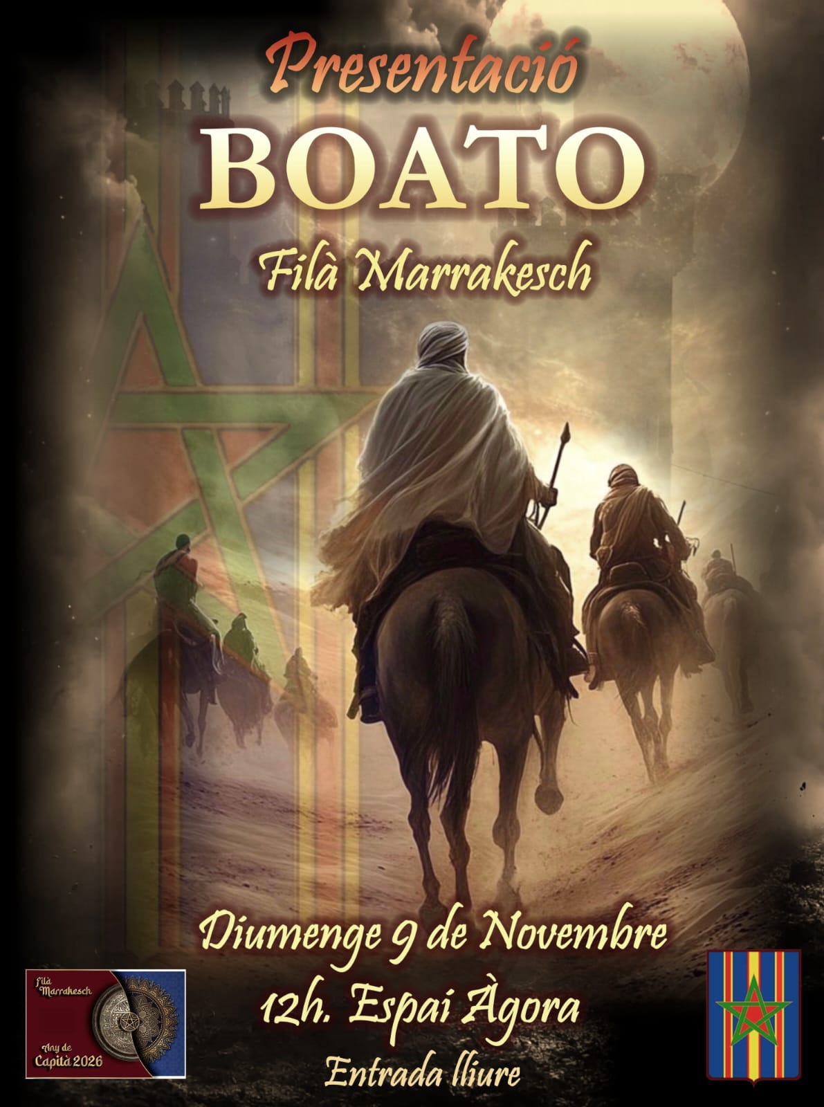 La Filà Marrakesch celebra el 9 de novembre a les 12 h en la Sala Àgora la presentació oficial del boato del Capità Moro 2026, representat per José Ignacio López Romá. Durant l’acte es revelaran els dissenys i vestits que l'acompanyaran durant les festes en honor a Sant Jordi. López Romá representarà la figura d'al-Azraq, de qui enguany se celebra el 750 aniversari de la seua mort, coincidint amb el patronatge de Sant Jordi.