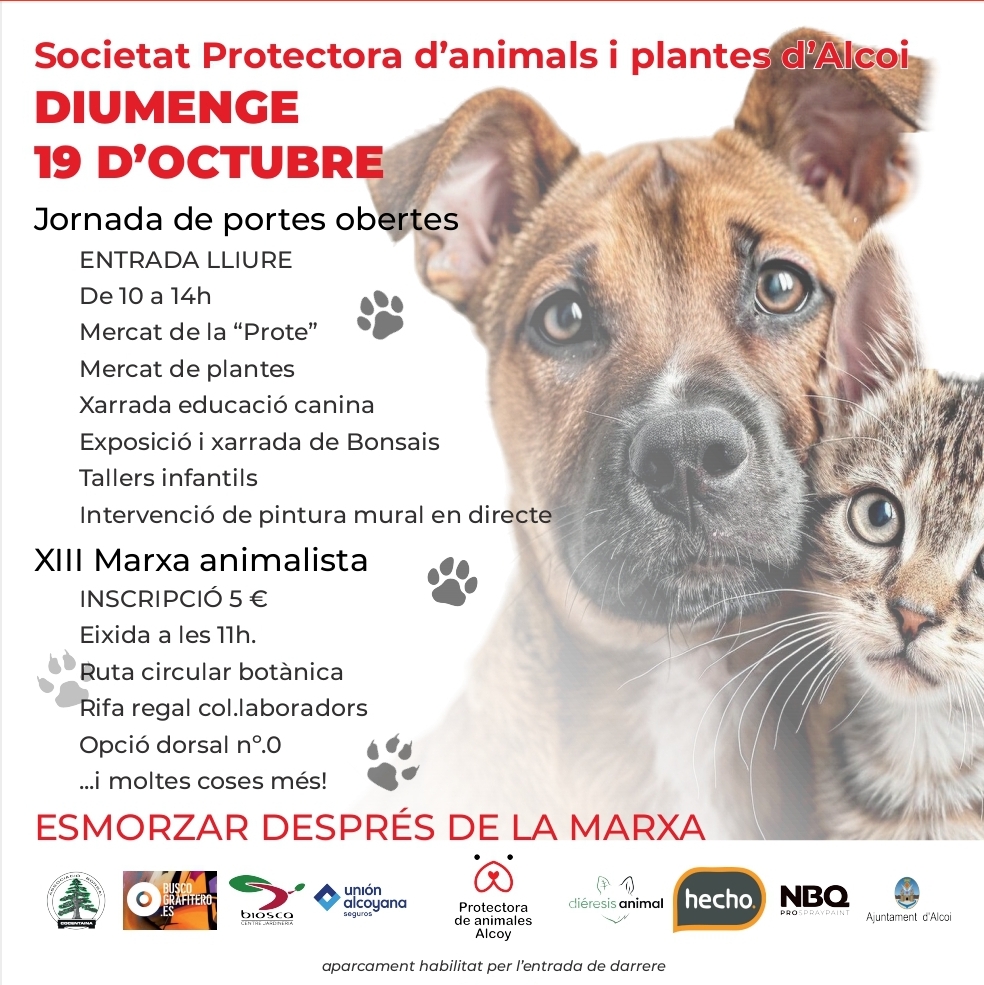 I per altra, jornada de portes obertes a la protectora durant tot el matí. I allí podrem gaudir d'una exposició de bonsais de l'Associació Bonsai Cocentaina; d'una xarrada d'educació canina a càrrec de Diéresis Animal; o del taller infantil 'Gatotízate'. També hi haurà mercadet solidari de plantes, i des de BuscoGrafitero.com estaran pintant en directe un mural a l'entrada de l'alberg municipal. I podreu assistir a la presentació del calendari d'enguany, dedicat als gossos i gats de l'alberg "amb una versió molt 'alcoiana' de l'any 2026 on les festes i activitats locals cobren especial rellevància".
