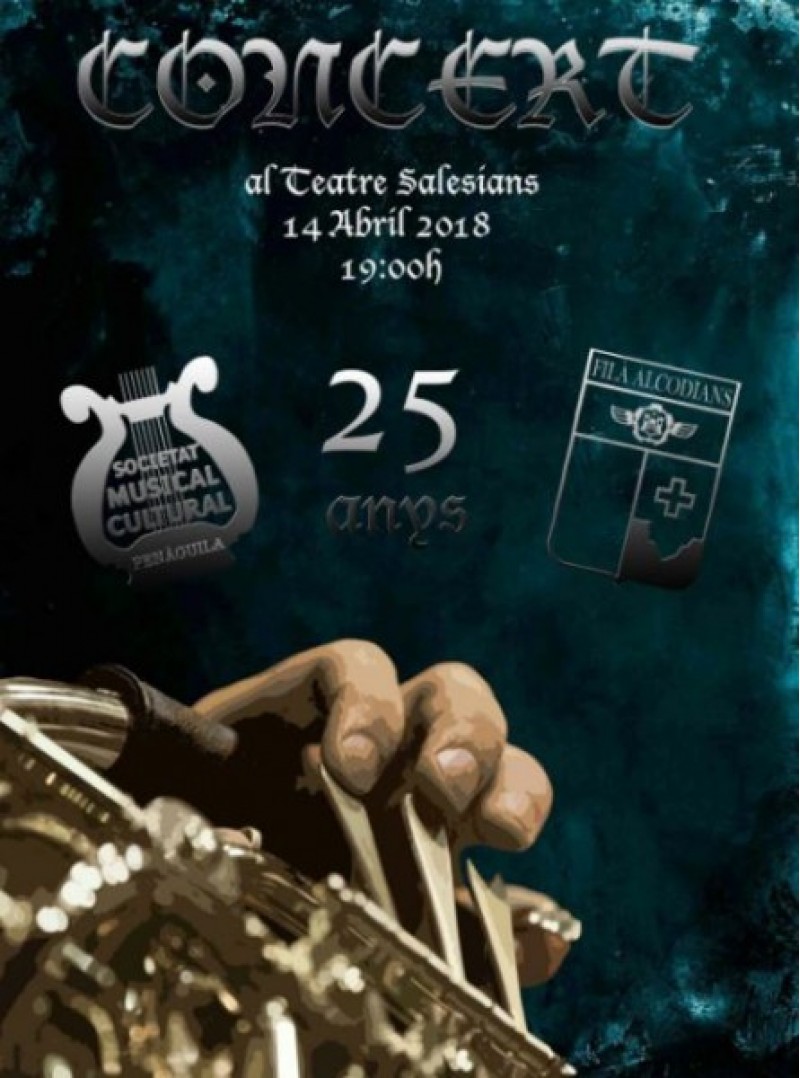 El Teatre Salesià acull un Concert de Música Festera per celebrar que la Societat Musical Cultural de Penàguila compleix 25 anys com a banda oficial de la Filà Alcodianos. Aquest se celebrarà el dissabte 14 d'abril a les 18:30 h. En finalitzar el concert hi haurà vi d'honor als locals de la Societat d'Antics Alumnes Salesians.