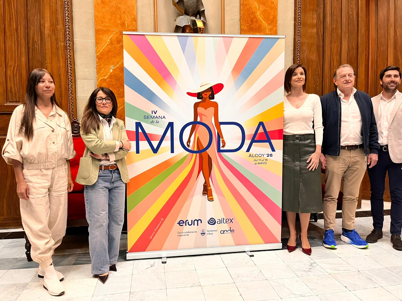 Finalment, s’ha presentat el cartell il·lustratiu d’aquesta edició, que ha estat obra de Ignacio Doménech, qui ha explicat els tres elements principals: la passarel·la amb una dona al centre, l’esclafit de colors de la primavera i la connexió del tèxtil i materials amb Alcoi.