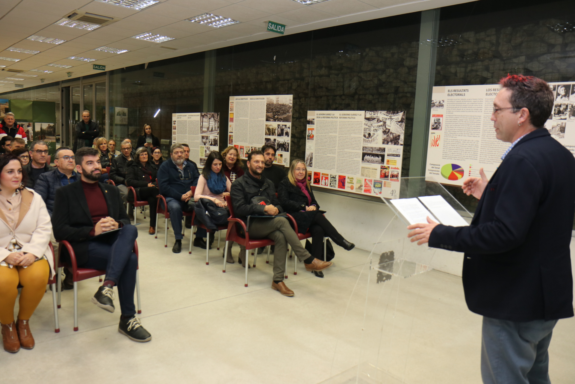 La inauguració va comptar amb l'exposició "40 anys de les primeres eleccions democràtiques". Una mostra de 14 panells que han desenvolupat des de l'Arxiu de la Democràcia des de la Universitat d'Alacant. Com a curiositat, l'alcalde va explicar que havien trobat l'acta de les primeres eleccions a Tibi i va ser un dels atractius durant l'acte.
