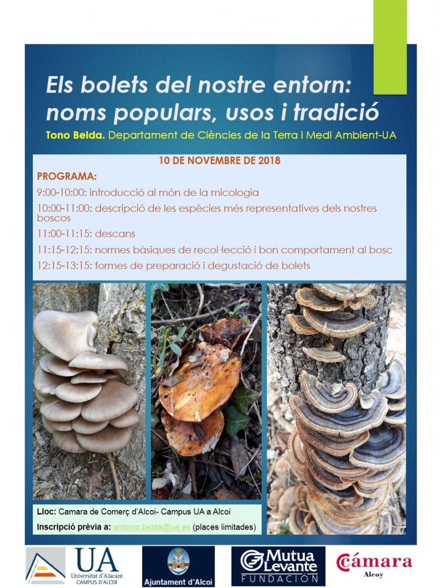 El Campus d'Alcoi de la Universitat d'Alacant permetrà endinsar-se en el món boletaire a través del curs gratuït impartit per Antoni Belda 'Els bolets del nostre entorn: noms populars, usos i tradició'.