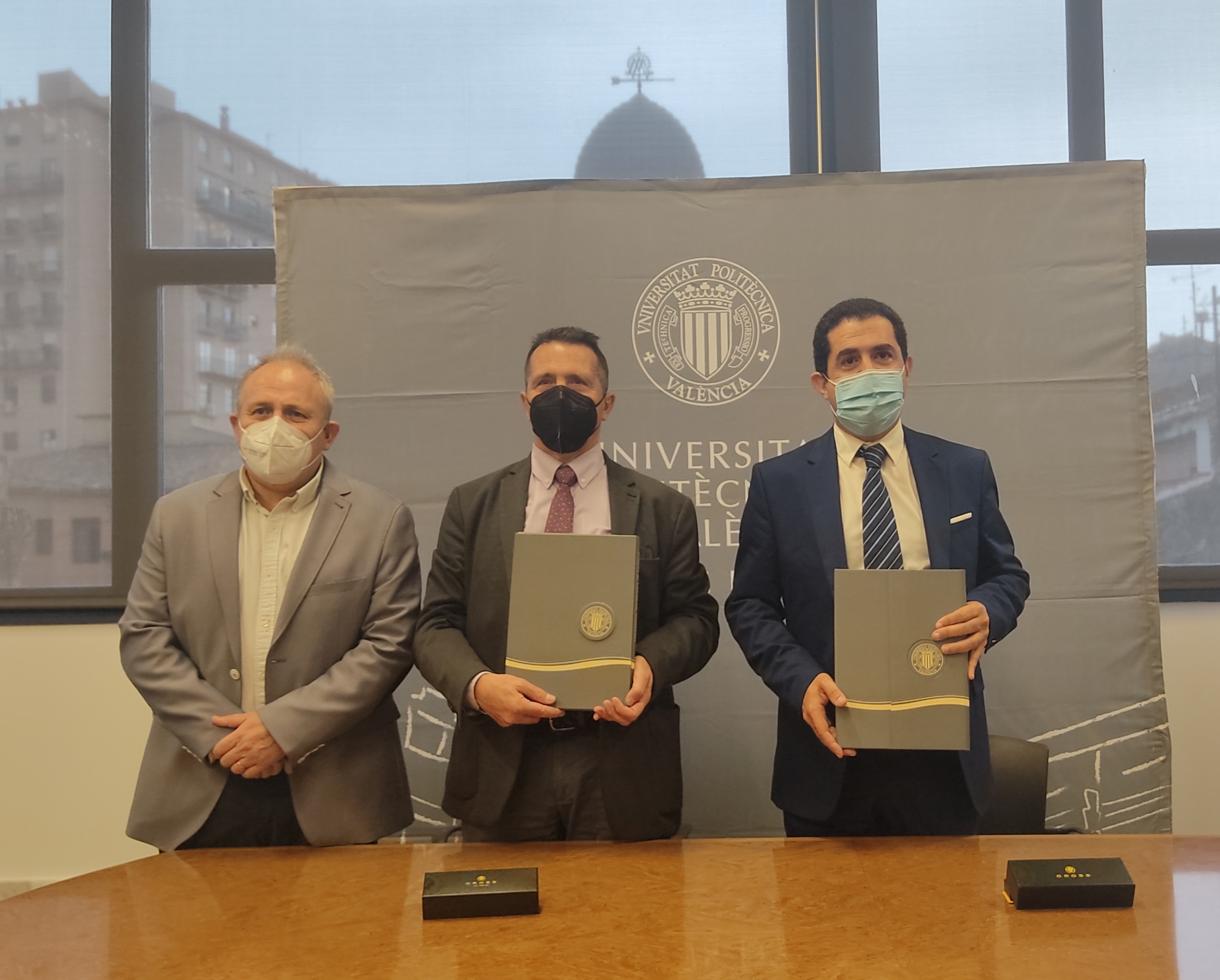 El rector de la Universitat Politècnica de València, José Capilla, el director de l'EPSA d'Alcoi, Pau Bernabeu, i l'alcalde d’Alcoi, Antonio Francés, han signat el conveni de col·laboració que posa en marxa aquesta Càtedra. A més, en la visita del rector de la UPV a Alcoi, també han tingut l’oportunitat de parlar de projectes de futur per a la ciutat.