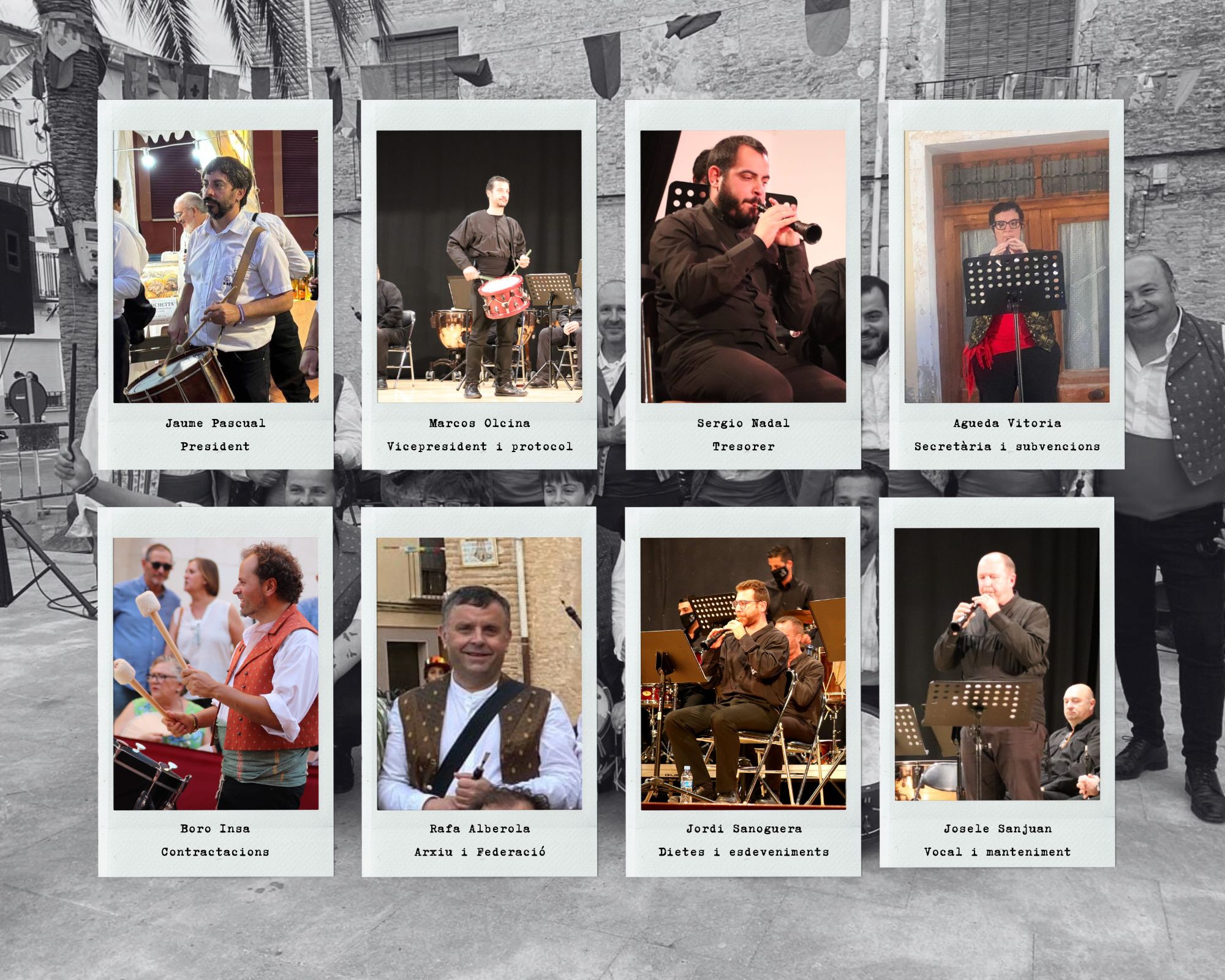 La junta directiva estarà formada per Marcos Olcina com a vicepresident i responsable de protocol, Águeda Vitoria com a secretària i encarregada de subvencions, i Sergio Nadal en la tresoreria. El nou equip es completa amb quatre vocals: Rafa Alberola, responsable de l’arxiu i representant en la Federació Valenciana de Dolçainers i Tabaleters; Salvador Insa, encarregat de les contractacions i noves actuacions; Jordi Sanoguera, que coordinarà dietes i esdeveniments; i Josele Sanjuan, responsable de manteniment.