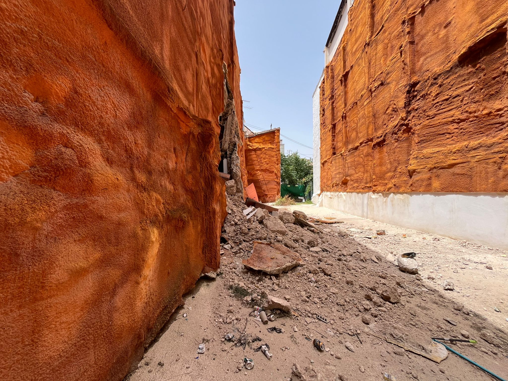 Ahir dimecres 17 de juliol va caure part de la façana mitgera de l'edifici de Sant Francesc 50, obligant a la família que allí vivia, i també antics propietaris de l'edifici, a abandonar sa casa. L'alcalde d'Alcoi Toni Francés ha confirmat hui que la inspecció dels tècnics municipals conclouen que l'edifici no està en ruïna imminent, però cal consolidar l'edifici perquè no caiga més.