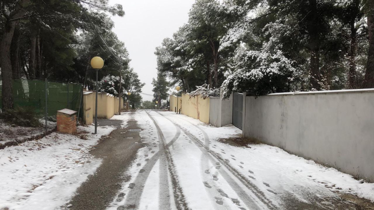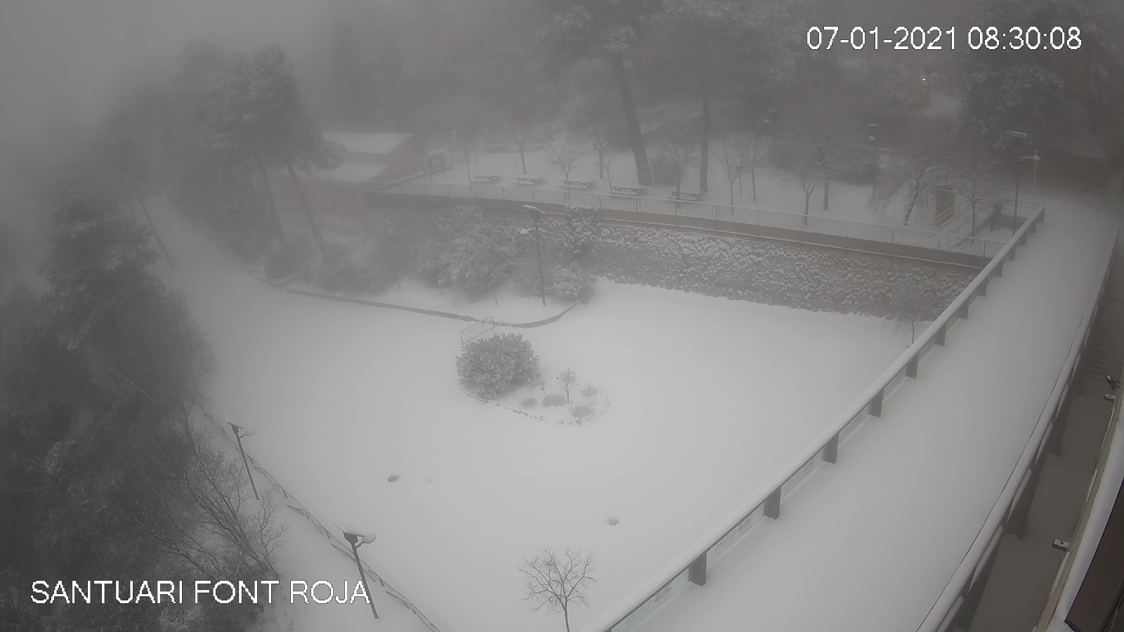 De moment la neu tan sols ha quallat en zones altes, com a la urbanització del Baradello, des d'on ens han arribat les següents imatges.