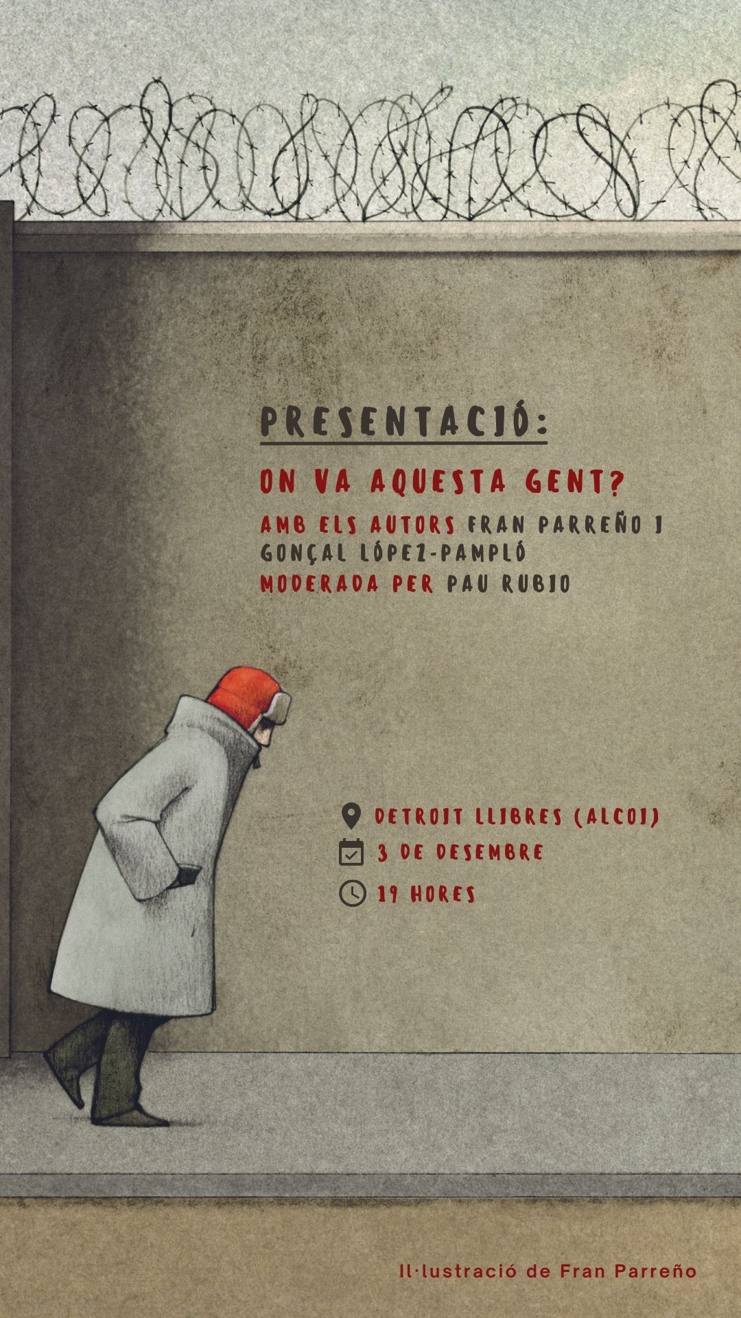 ‘On va aquesta gent?’ és un àlbum il·lustrat per a adults de temàtica feixista i combativa. Una proposta que es presenta aquest 3 de desembre a les 19h a la lliberia ‘Detroit Llibres’ per part dels seus autors, l’alcoià, Fran Parreño i el director literari de Bromera Gonçal López-Pampló.