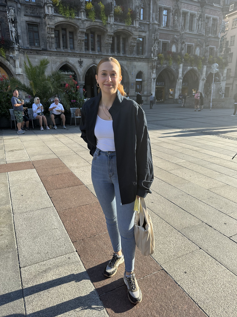 I entre tots els 5 participants trobem a Sonia Carchano, alcoiana que fa un any que viu a Munic. En ella han quedat en el centre de la ciutat, la Marienplatz, per a visitar la columna de Maria o Mariensäule, de quinze metres d'alt. En Sonia Carchano, la televisió valenciana també visitarà la sala de la Biblioteca Jurídica de Munic i el palau de Nymphenburg, per acabar el dia ballant salsa amb un amic.