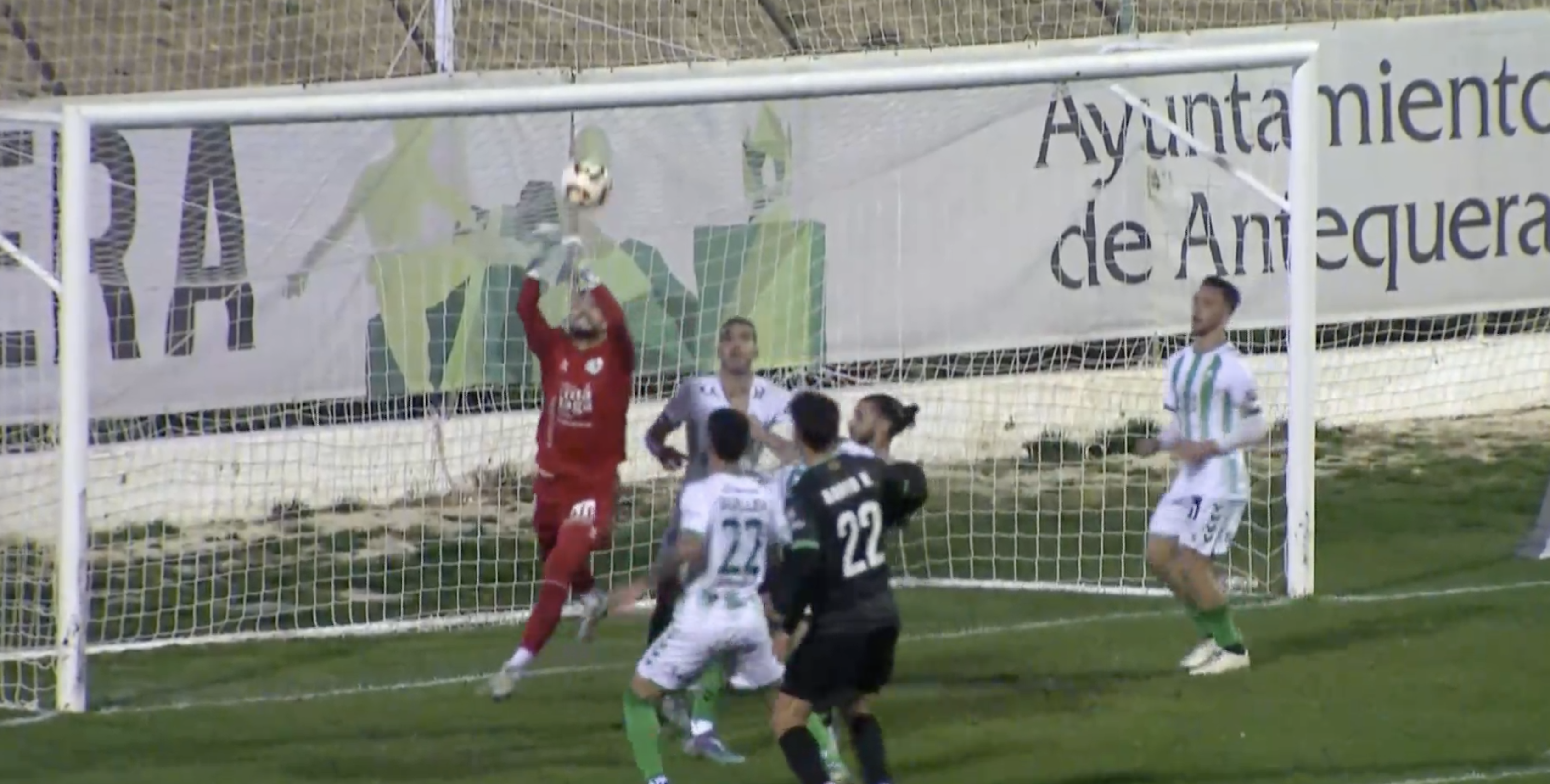 Tot i el poc bagatge ofensiu de l'Alcoyano, els de Mir han tingut dues ocasions clares. La primera, una centrada xut en el primer acte de Pastrana que s'ha estavellat al pal alt de Jero... sí l'ex de l'Alcoyano que la va 'liar' en el partit d'anada a El Collao increpant el públic. El desagraït meta de Jumilla no ha tingut quasi faena. Això sí, s'hauria d'haver enfrontat a un penalti en el descompte que l'àrbitre no ha xiulat. Juanmi, defensa de l'Antequera ha rebutjat un baló amb el braç -clàrament- dins de l'àrea.