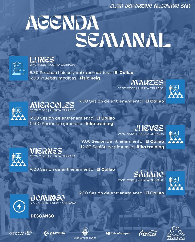 Amb més reforços i una agenda de treball ben definida, l'Alcoyano continua establint les bases d'aquesta nova temporada, sumant un total de 15 jugadors. Recordem tots els noms confirmats: Loren Fernández, Pablo Carbonell, Joan Piera, Lado Mokhevishvili, Jose Solbes, Diego de Pedro, Fran Moreno, Adolfo Romero, Raul González, Victor Sala Jagoba Zarraga, Izan Llinares i Adrián Lledó.