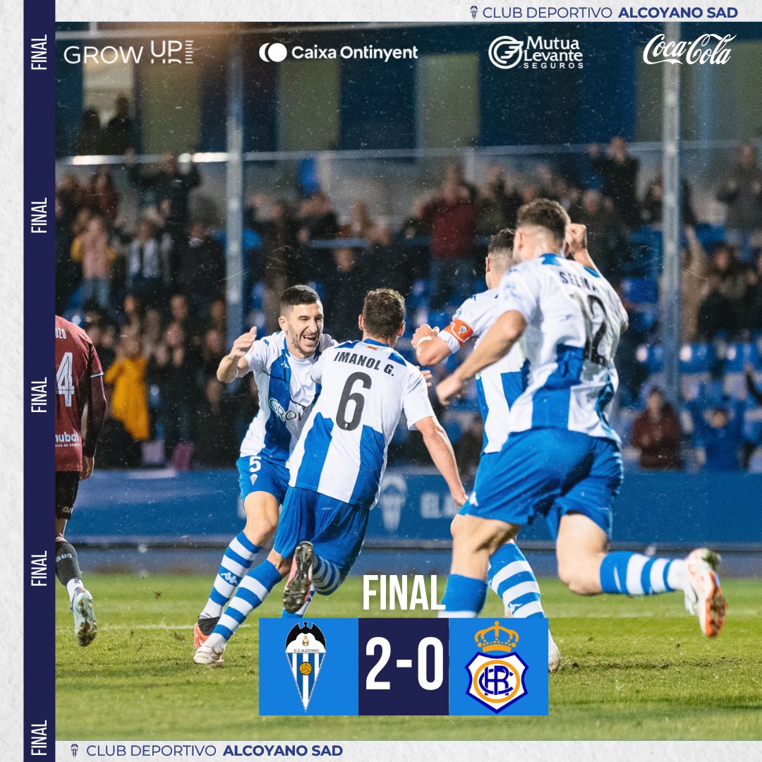 El Deportivo Alcoyano torna a somriure després de perdre justament a Eivissa. El Recreativo de Huelva ha paregut un equip menor a El Collao i els de Vicente Parras han sabut anul·lar-lo amb una pressió molt avançada. Dani Selma i Kike Carrasco han sigut titulars. Els gols, d’Imanol i Alcaina.