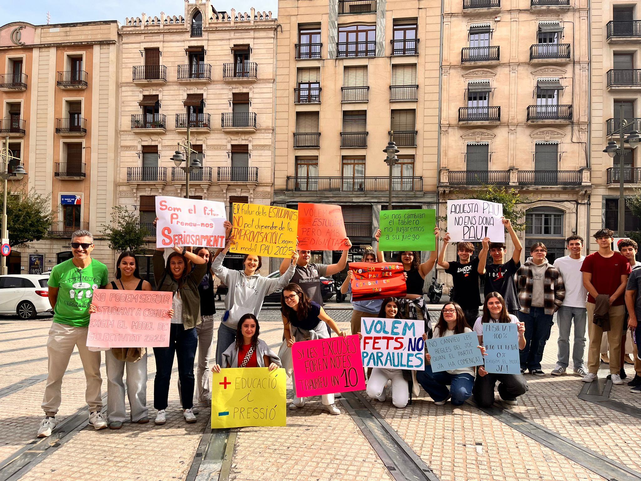 Noa Torregrosa, estudiant del mateix centre, afirma que volen que “donem el 80% dels coneixements de segon de batxiller, cosa que és impossible perquè tenim 9 assignatures”.