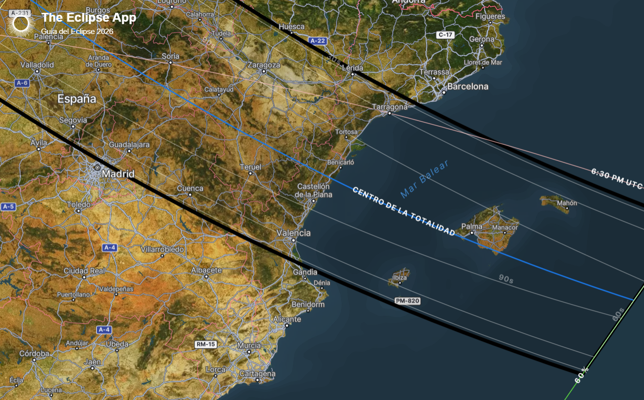 El pròxim eclipse total de sol, el 12 d’agost, es podrà vore des de Groenlàndia, Islàndia, i part d’Europa, també a Espanya. Com expliquen des de l'Observatori Astronòmic Nacional, feia més d’un segle que no es veia a Espanya un eclipse total i, en esta ocasió, la franja de totalitat (tot eixe espai des d’on es vorà com el sol queda cobert completament) creua tota la península des de la Corunya acabant en València, i passa a tan sols 55 quilòmetres de les nostres comarques.