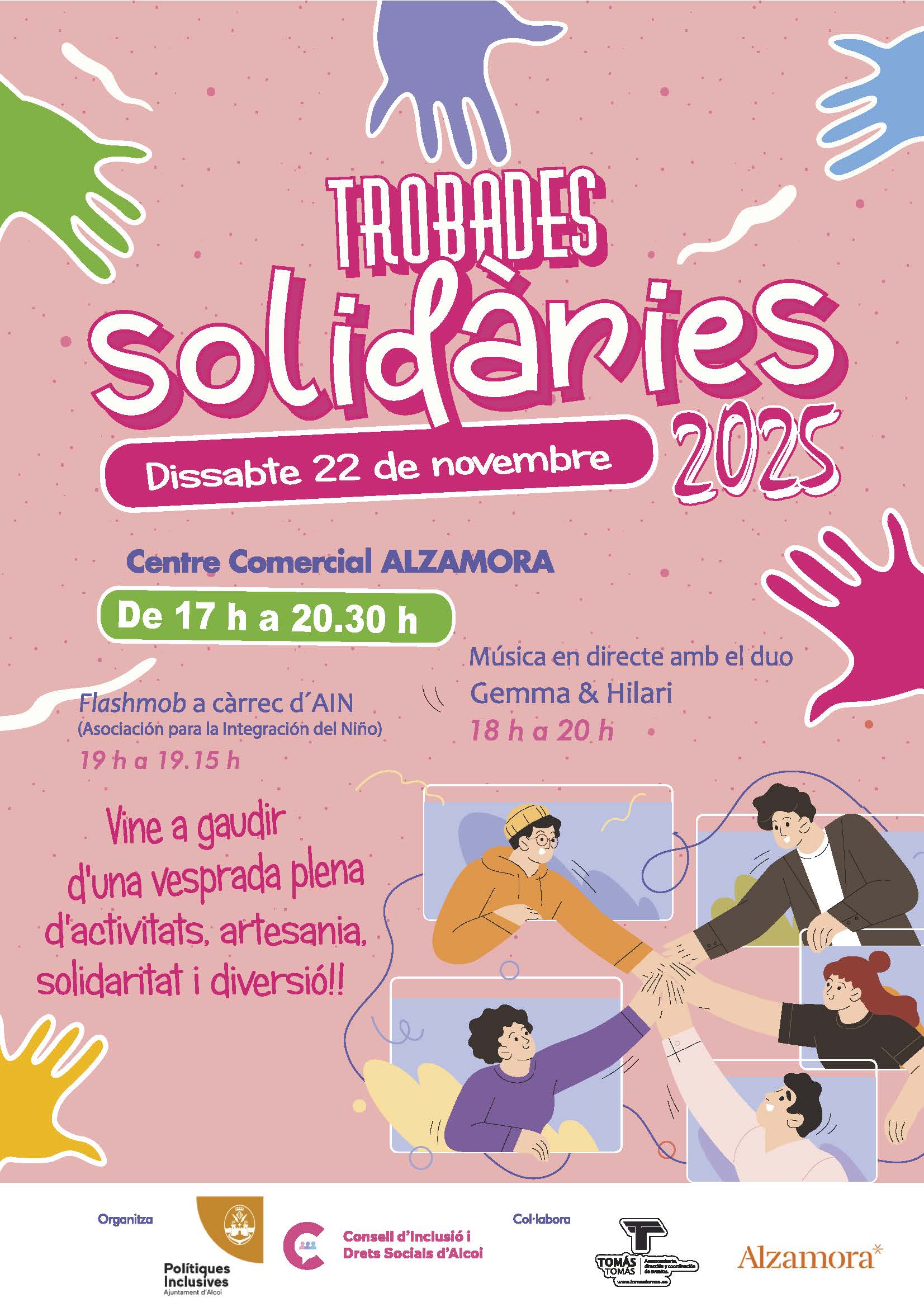 A més, tindrem animació i música en directe. El duo format per Gemma i Hilari actuarà de 18.00 a 20.00 hores. I a les 19 hores podrem gaudir d'un flashmob de l’Associació per a la Integració del Xiquet, AIN, una activitat que busca visibilitzar la inclusió a través del ball i la participació col·lectiva.