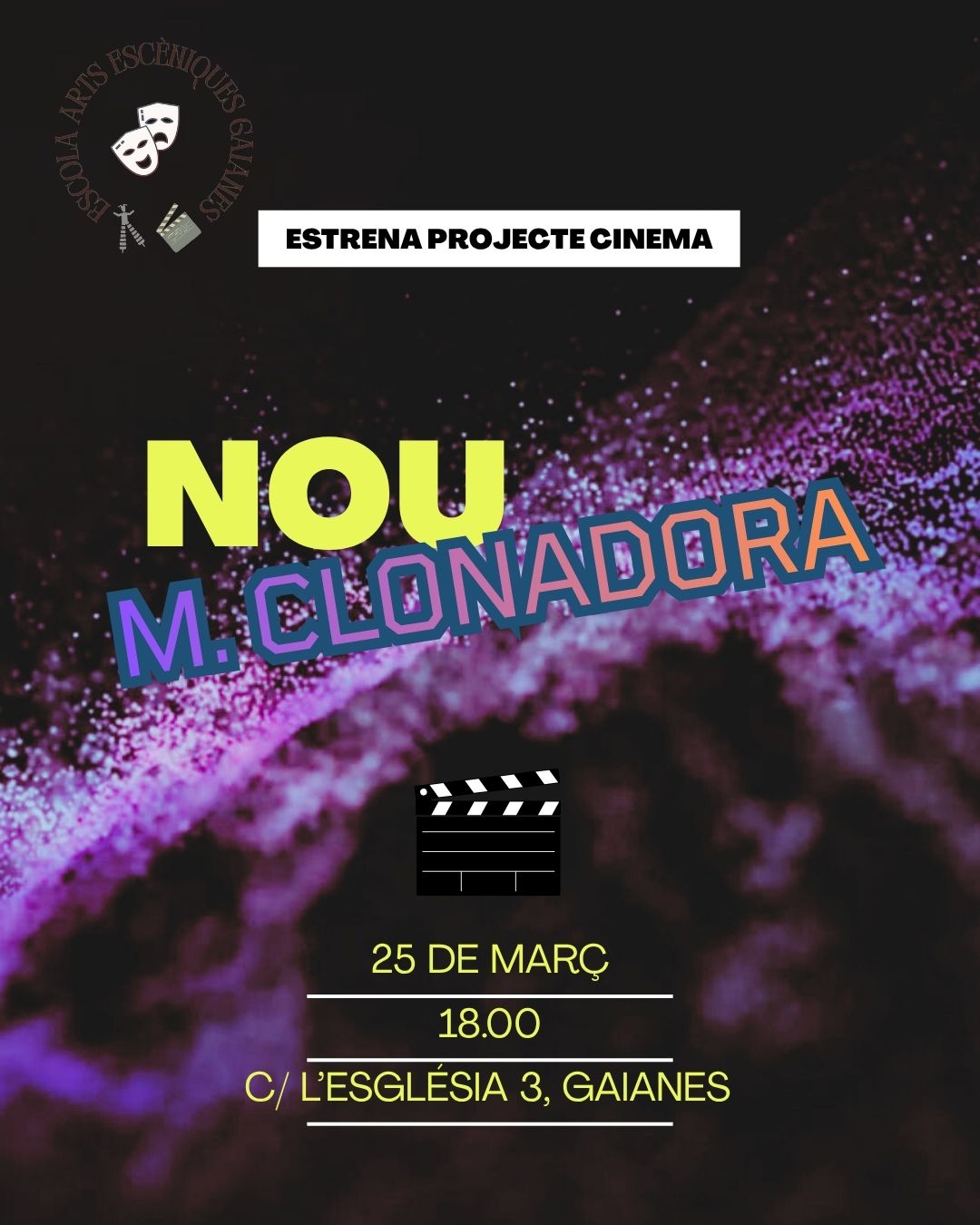 L’Escola d’Arts Escèniques de Gaianes dona a conéixer aquesta vesprada a les 18.00 hores, el projecte audiovisual “M. Clonadora”, una proposta creativa impulsada amb la participació de l’alumnat; la qual naix com un exercici pràctic de cinema, centrat en l’ús de tècniques de clonació visual. A través d’aquesta metodologia, els participants han elaborat diferents escenes en les quals interactuen amb una versió duplicada d’ells mateixos, explorant així noves formes narratives i expressives.