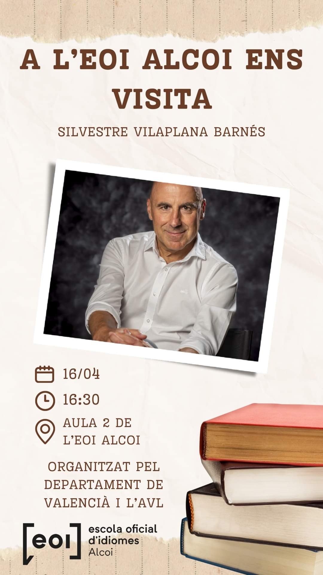 Aquest dimarts 16 d'abril, el reconegut escriptor alcoià Silvestre Vilaplana visitarà l’Escola Oficial d’Idiomes d’Alcoi a partir de les 16:30 hores.