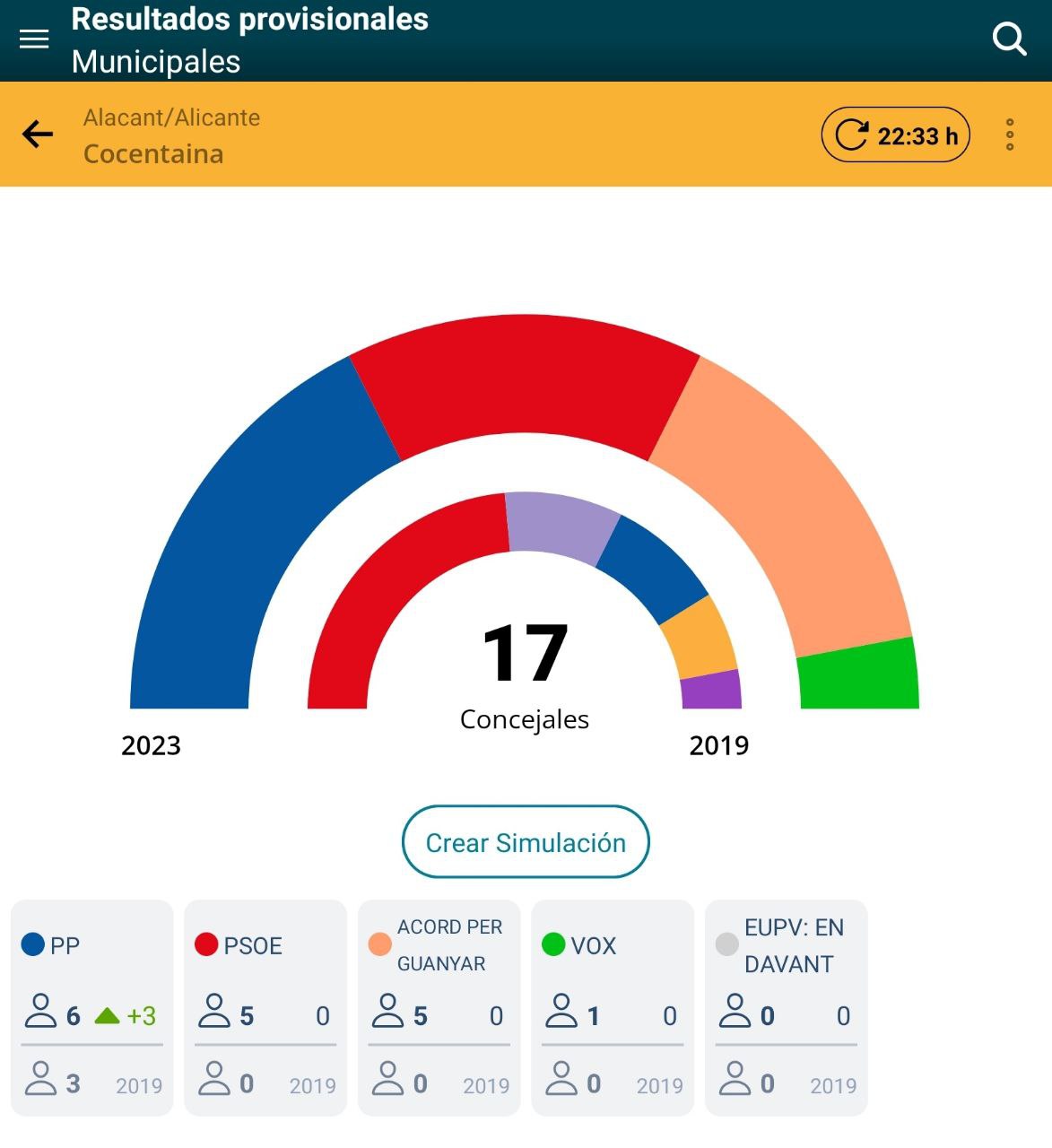 A Cocentaina el canvi ha sigut gran. Els socialistes han perdut l'hegemonia de dècades i ja no són els més votats. El PP ha superat en vots als socialistes, 300 vots més, i duplica els seus regidors perquè passa de 3 que tenia a 6.