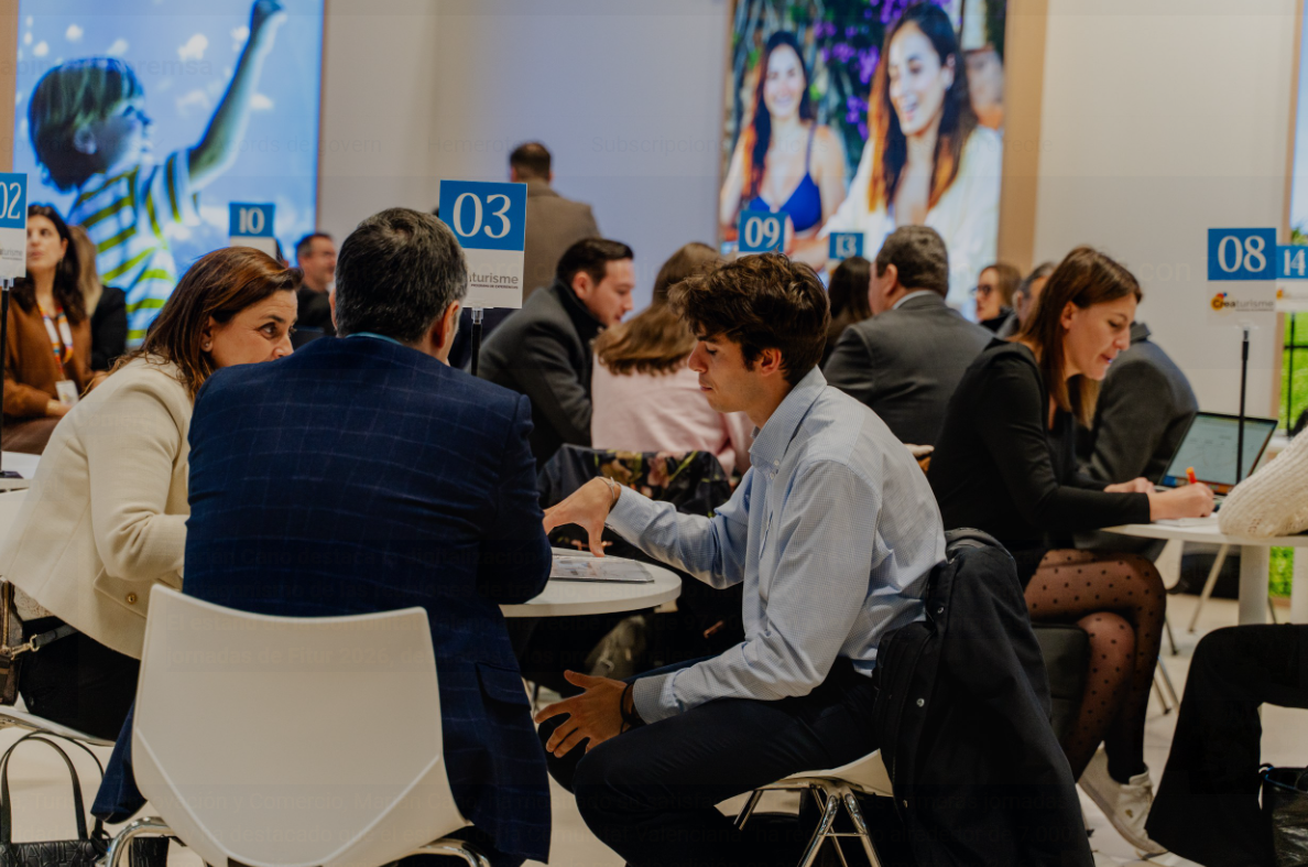 FITUR 2026 tanca les seues tres primeres jornades, dedicades exclusivament al sector professional, amb xifres històriques per a la Comunitat Valenciana. Segons les primeres estimacions de la Generalitat, l’estand autonòmic ha registrat al voltant de 7.000 reunions de treball, el que suposa un increment del 34,6% respecte a l’edició anterior.