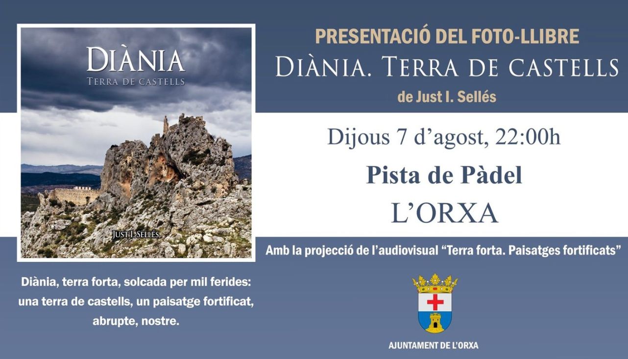 El dijous 7 d’agost a les 22 h, la pista de pàdel es transformarà en escenari per a la presentació del foto-llibre Diània. Terra de castells, de Just I. Sellés. L’acte inclourà també la projecció de l’audiovisual "Terra forta. Paisatges fortificats", que convida a redescobrir el territori i el seu patrimoni històric.