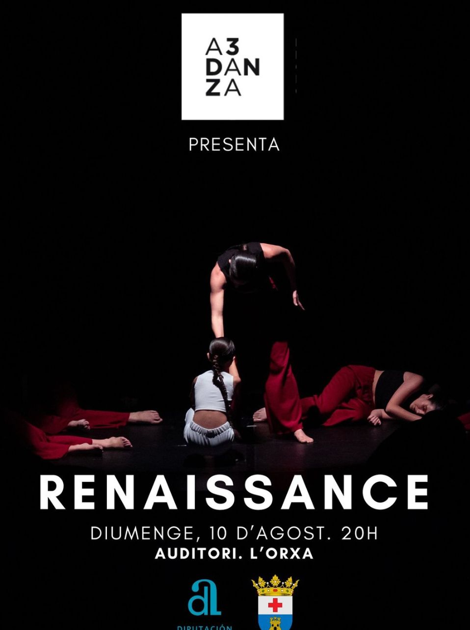 Finalment, el diumenge 10 d’agost a les 20 h, l’Auditori municipal acollirà l’espectacle de dansa contemporània “Renaissance” de la companyia A3 Danza, una proposta escènica carregada d’emoció i expressivitat corporal que posarà el punt final a una setmana repleta d’activitat cultural al municipi.