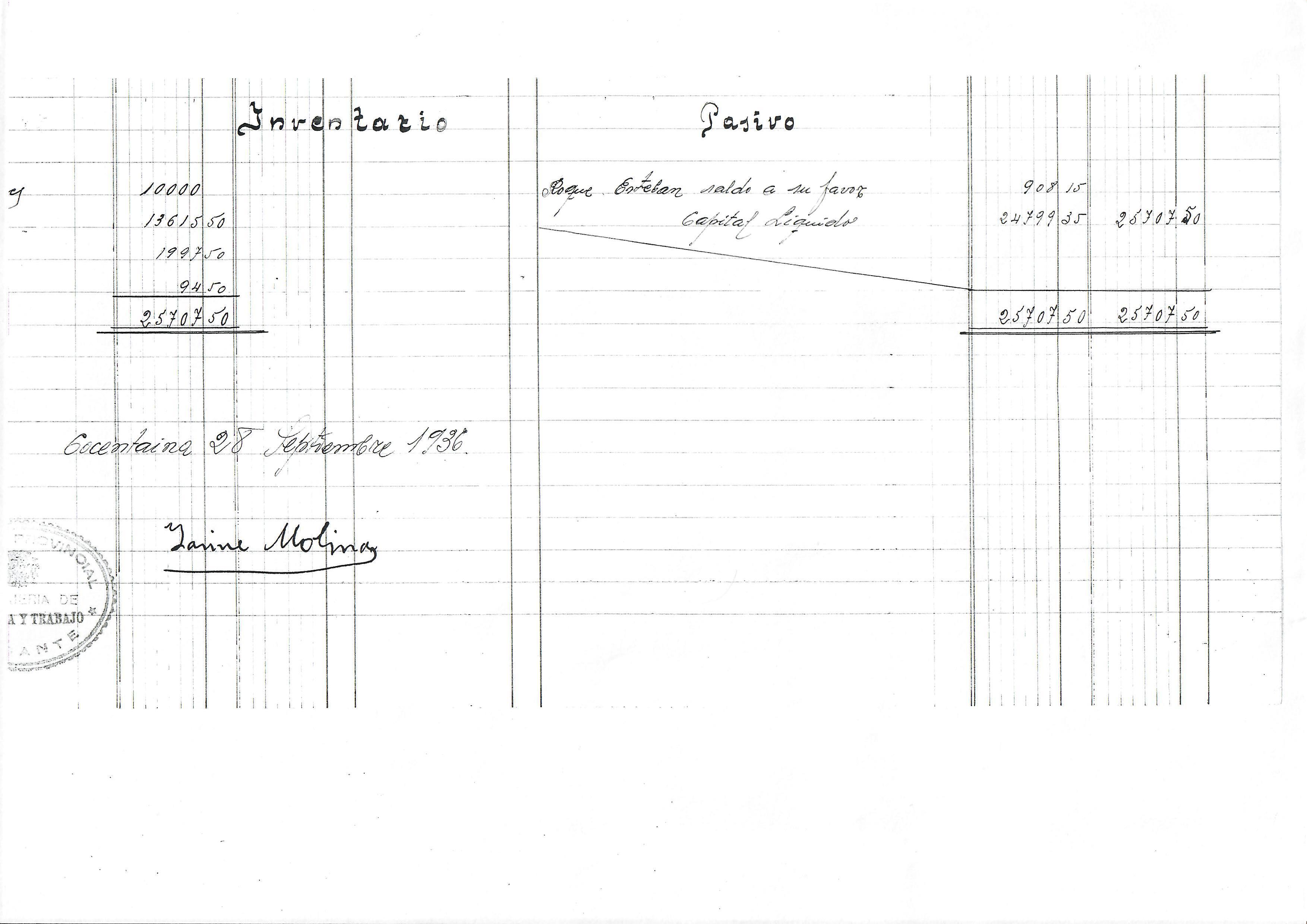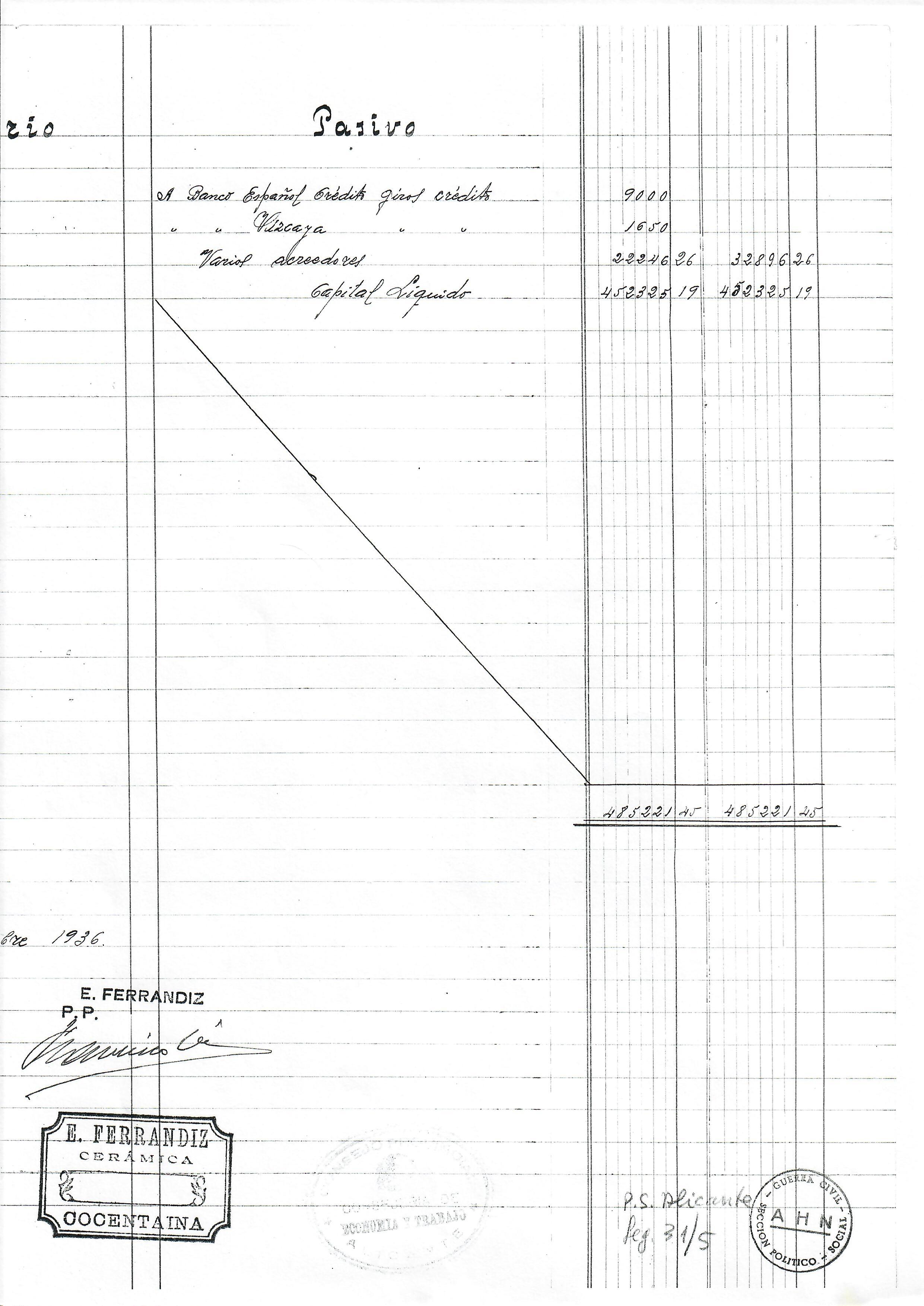 Finalment, i dissortadament, he de fer un breu comentari per lamentar un greu fet luctuós. El titular de l’empresa de Ferrandis, Emilio Ferrandiz Pérez, no va signar l‘inventari per estar empresonat possiblement per les lleis repressives republicanes. Ho va fer l’apoderat de l’empresa com es pot comprovar. Malauradament, dos dies desprès d’aquesta data, crec que fou l’1 d’octubre, s’ha pogut comprovar que assaltaren la presó uns forasters a punta de pistola i segrestaren uns interns que desprès foren assassinats. Entre ells estava el senyor Emilio Ferrandiz.