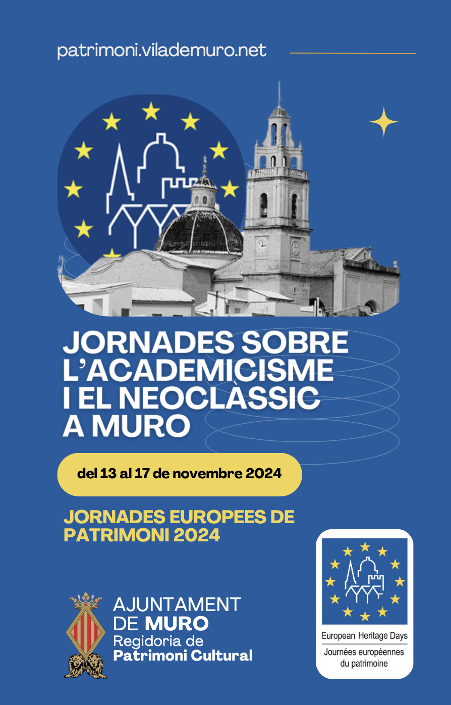 Muro celebra del 13 al 17 de novembre les primeres jornades europees sobre Patrimoni, amb una ampla oferta d'activitats per apropar-se al patrimoni monumental i cultural del poble. Les jornades se centren en un període concret, l'Academicista i Neoclàssic que, com expliquen des de la regidoria de Patrimoni Cultural, en Muro suposa "l’etapa històrica de transformació a un poble modern, obert i ordenat i que alcança tota la seua esplendor a Muro amb la realització de les pintures parroquials de Miguel Parra, considerades pels estudiosos un dels conjunts pictòrics més desconeguts i importants del període Neoclàssic a les comarques d'Alacant per la seua tècnica pictòrica i cromatisme".