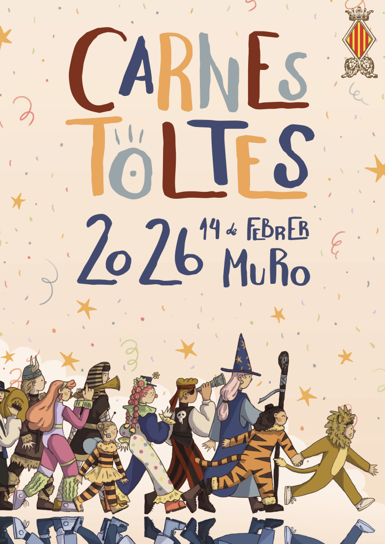 La imatge del Carnestoltes 2026 és obra d’Ana Almeria Vilaplana, guanyadora del concurs de cartells, que ha apostat per una il·lustració clara i accessible que reflecteix la diversitat d’edats i disfresses que caracteritza aquesta festa.