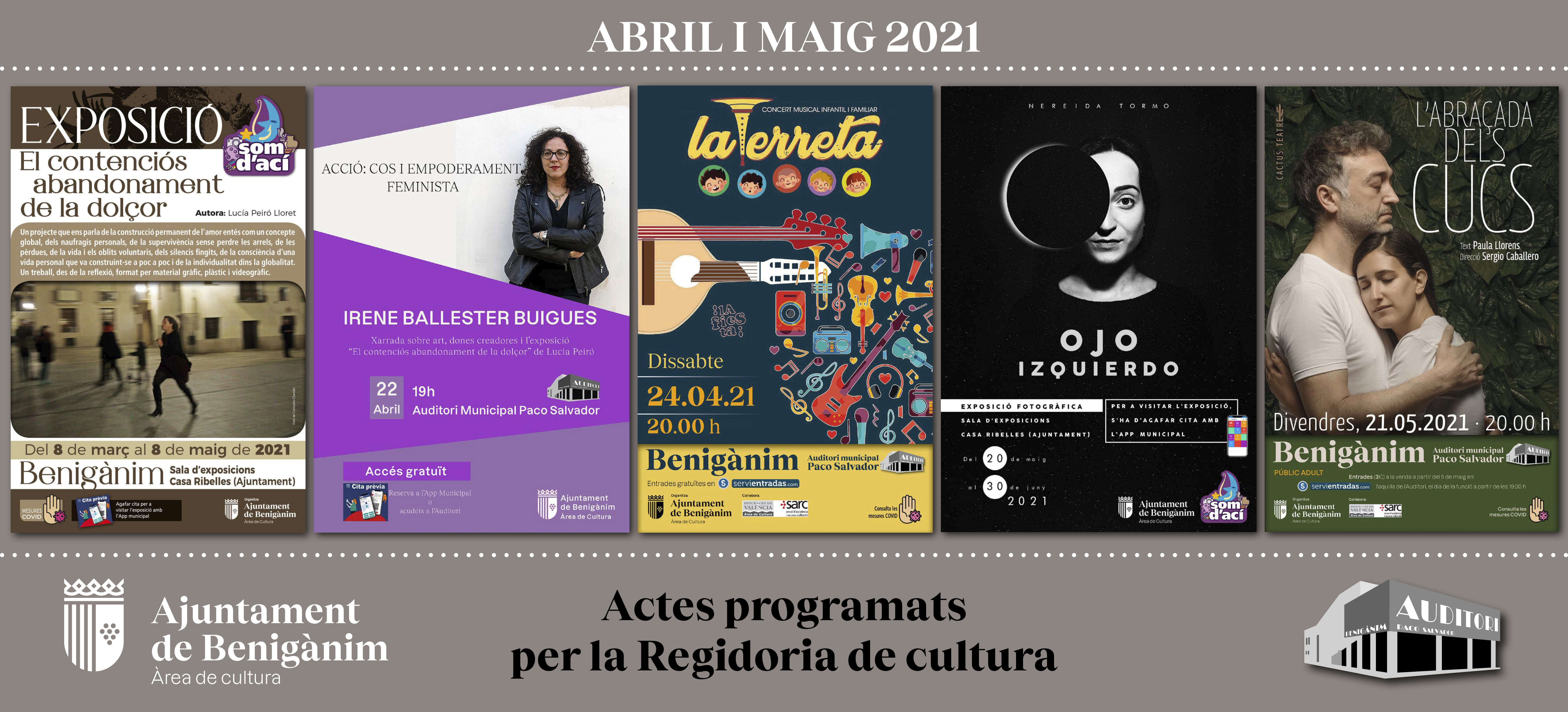 La regidoria de Cultura de l’Ajuntament de Benigànim continua amb la programació cultural per al mes d’abril i maig. El cicle Som d’Ací 2021, destinat a la promoció i difusió de les arts plàstiques, continua en maig amb una nova exposició de la fotògrafa, Nereida Tormo, a la sala d’exposicions de la Casa Ribelles. Part de la seua obra es pot visionar fent clic en aquest enllaç.