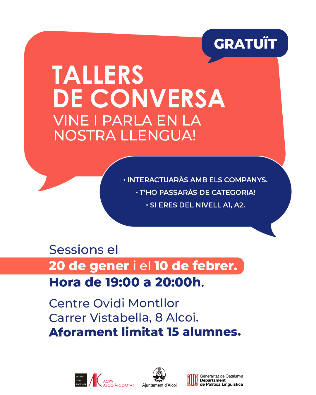 L’activitat, impartida per Andreu Rubio, està pensada tant per a persones que s’inicien en l’aprenentatge del valencià com per a aquelles que volen guanyar seguretat i fluïdesa en la conversa.