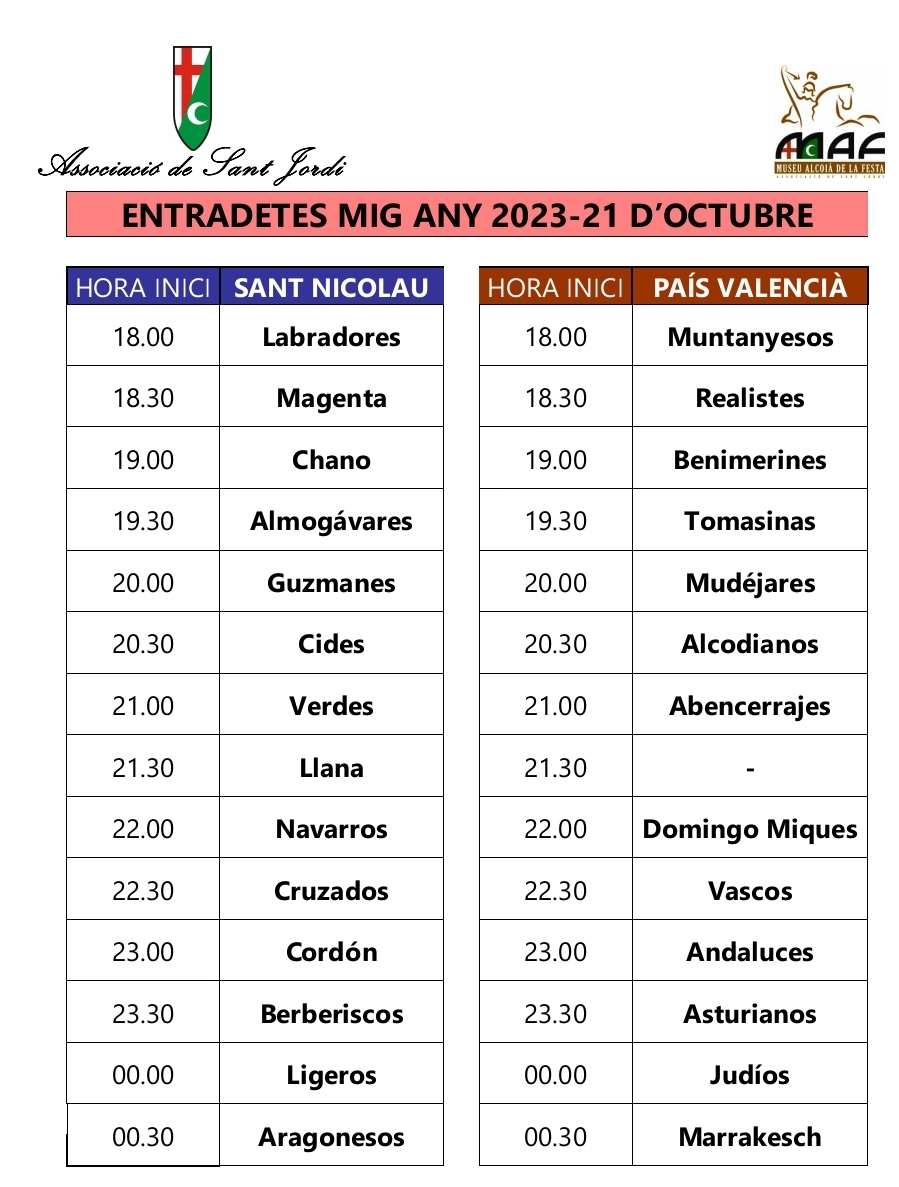 L'Associació de Sant Jordi sol·licita a les filaes que complisquen "de manera rigorosa els horaris marcats perquè puguen gaudir tots els festers, públic en general, i visitants".