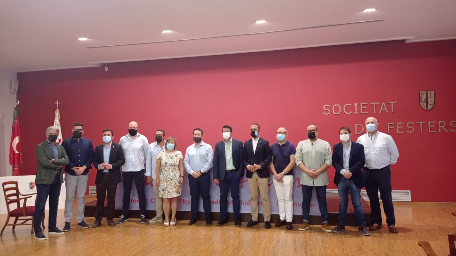A banda dels representants de les institucions festeres dels cinc municipis fundadors (Ontinyent, Caudet, Yecla, Almansa i Elda), la roda de premsa ha comptat amb la presència dels diputats autonòmics Felipe Carrasco i Jesús Pla, el diputat provincial Joan Sanchis i els alcaldes d’Ontinyent i Almansa, Jorge Rodríguez i Javier Sánchez.