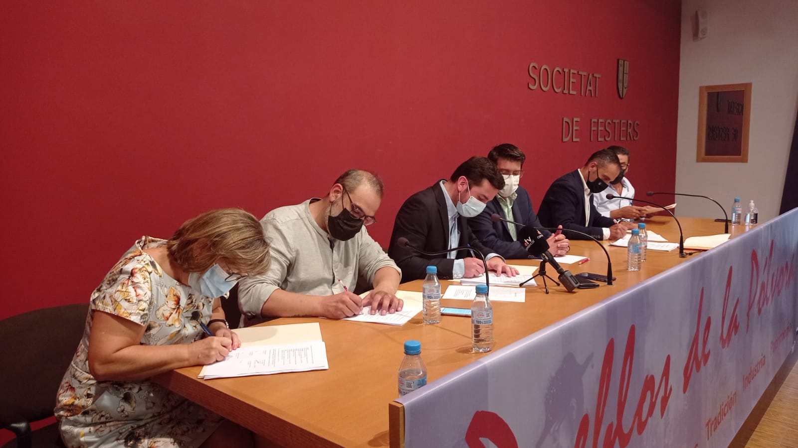 Aquest divendres, 20 d’agost, representants dels cinc municipis que conformen l’associació Pueblos de la Pólvora s’han reunit al saló d’actes de la Societat de Festers d’Ontinyent per a signar l’acta fundacional amb la qual naix oficialmente aquesta associació.
