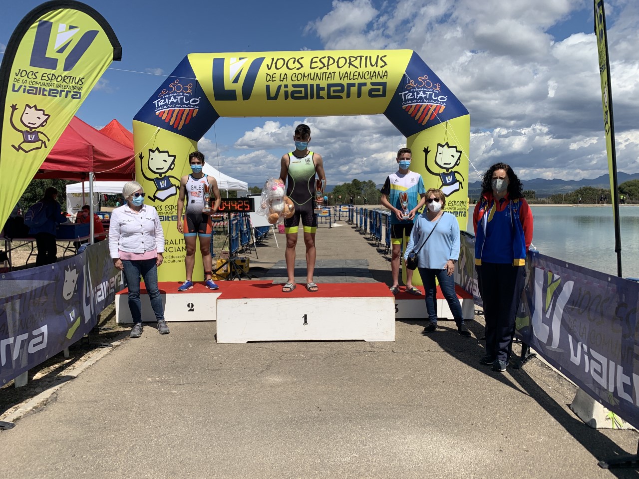 Hector Tolsà, qui va ser el vencedor de la prova, Javi Lletí, pujant al tercer graó del pòdium, Rafel Moral, Enrique Torras, Pau Granero i Raul Revert van estar els responsables de representar a la capital de la Vall d’Albaida en l’eixida masculina de categoria cadets, mentre que Mireia Albero i Elisa Albert ho feien el mateix en l’eixida femenina. En aquesta ocasió les i els esportistes competien a un triatló que combinava 300 metres de natació, 4’5 kilòmetres de ciclisme i 1.000 metres de carrera a peu.